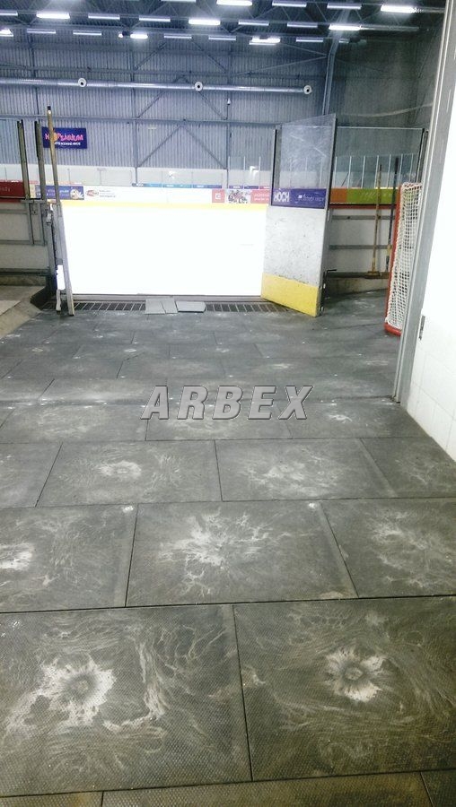 Podlahová deska interierová kuličková malá - vstřikovaná se využívá na zimních stadionech, ve výrobních a skladovacích halách a také v halách a chodbách.