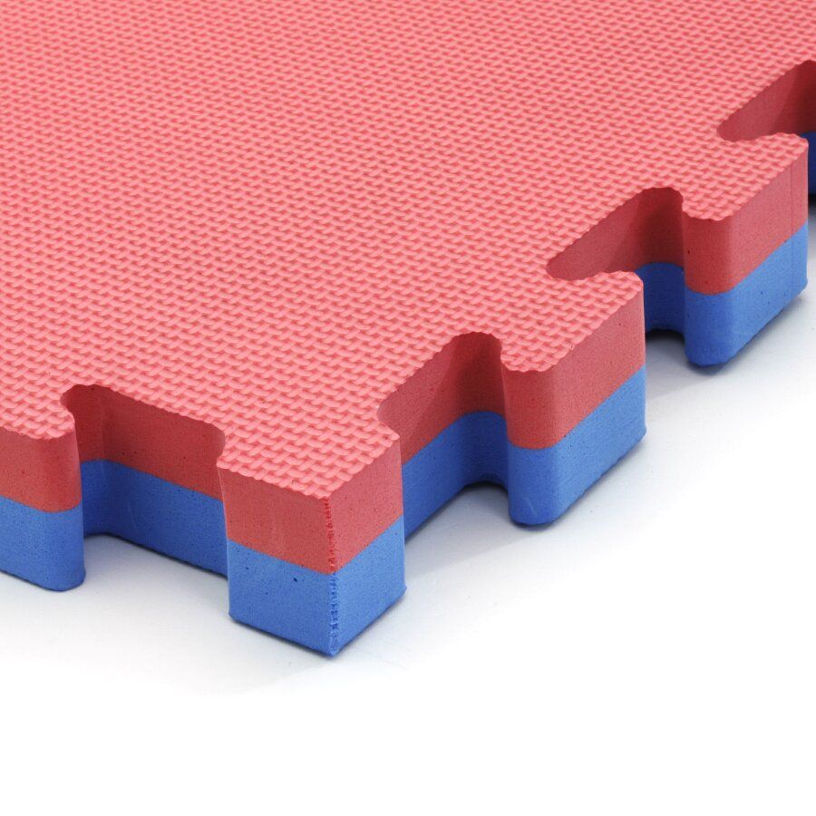 Červeno-modrá modulární pěnová podložka Tatami je oboustranná podložka tvaru puzzle, přičemž jednotlivé díly do sebe přesně zapadají. Výhodou Tatami podložky je protiskluzová pěna a měkký dotek. Lze ji využít pro všechny druhy sportů, kde se cvičí naboso.