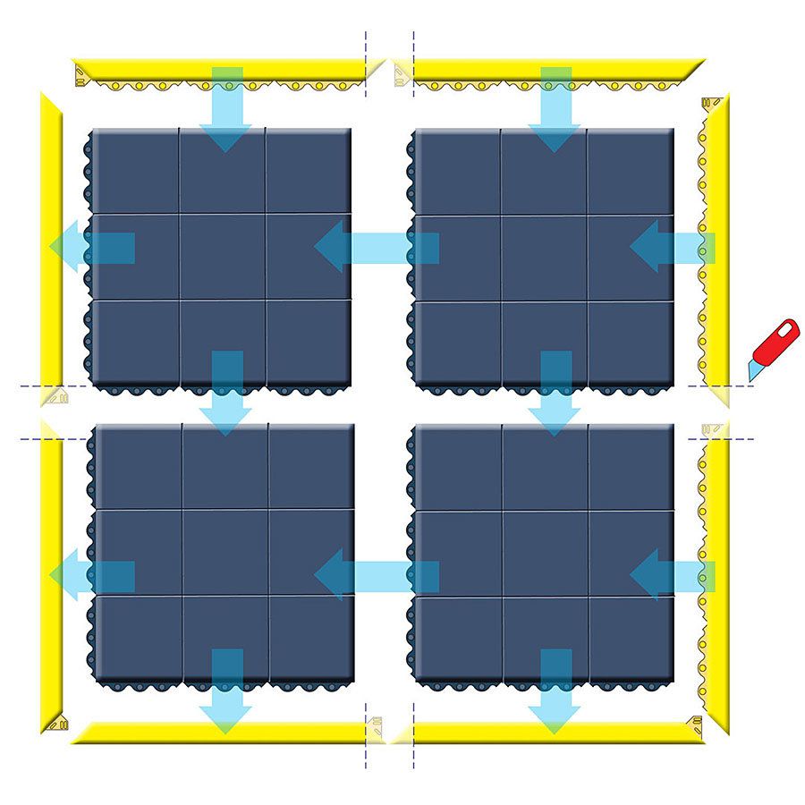 Zámky rohoží umožňují napojení rohoží v podélném i příčném směru. Přímo na místě z nich lze vytvářet ostrůvkové konfigurace nebo celoplošně pokrýt i složitě členitá pracoviště. Na výborných protiúnavových vlastnostech se podílí jak konstrukce rohože, tak i kvalita použitých surovin.