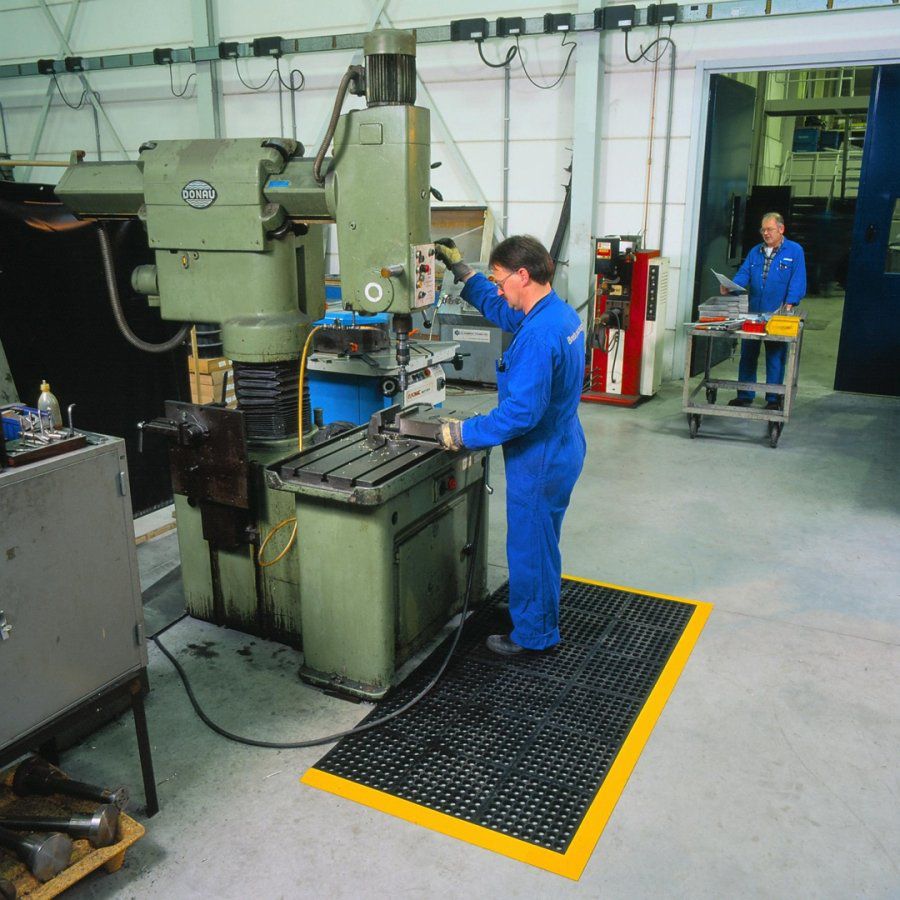 Modulární protiskluzová protiúnavová průmyslová rohož Cushion Easy s otvory pro odvod nečistot s povrchu a snadné odvětrávání udrží pracoviště suché a čisté. Rohož je tvořena čtvercovými modulovými rohožemi z odolné gumové směsi o rozměru 91 x 91 cm. Těmito moduly lze pokrýt rozlehlá pracoviště i individuální pracovní stanice. Vysokou ergonomii zajišťuje protiskluzný povrch a 19 mm silná, pružná konstrukce rohože, poskytující vysoký pracovní komfort v suchém průmyslovém prostředí.
