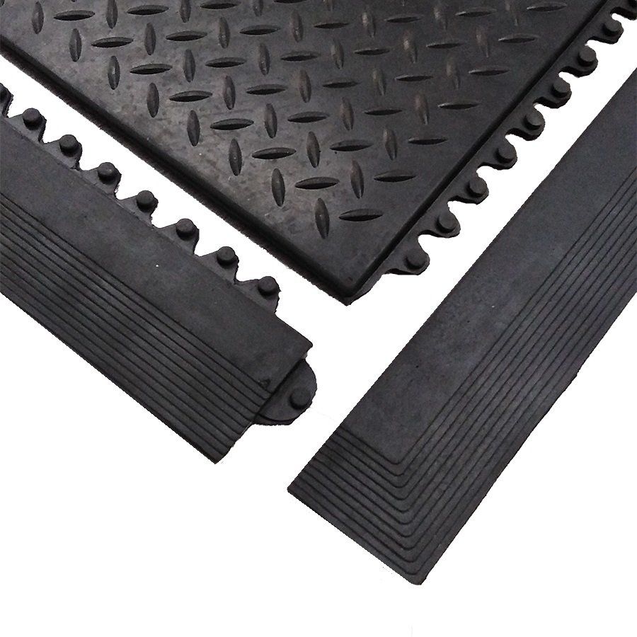 Gumová nájezdová hrana určená pro bezpečnější přístup a pohodlnější přejezd gumové rohože Diamond Plate Tile.