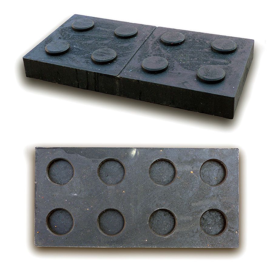 Dvojité bloky určené pro podkládání dlouhých hran, rámů a nosníků. Spodní strana má vždy 8 otvorů pro čepy.