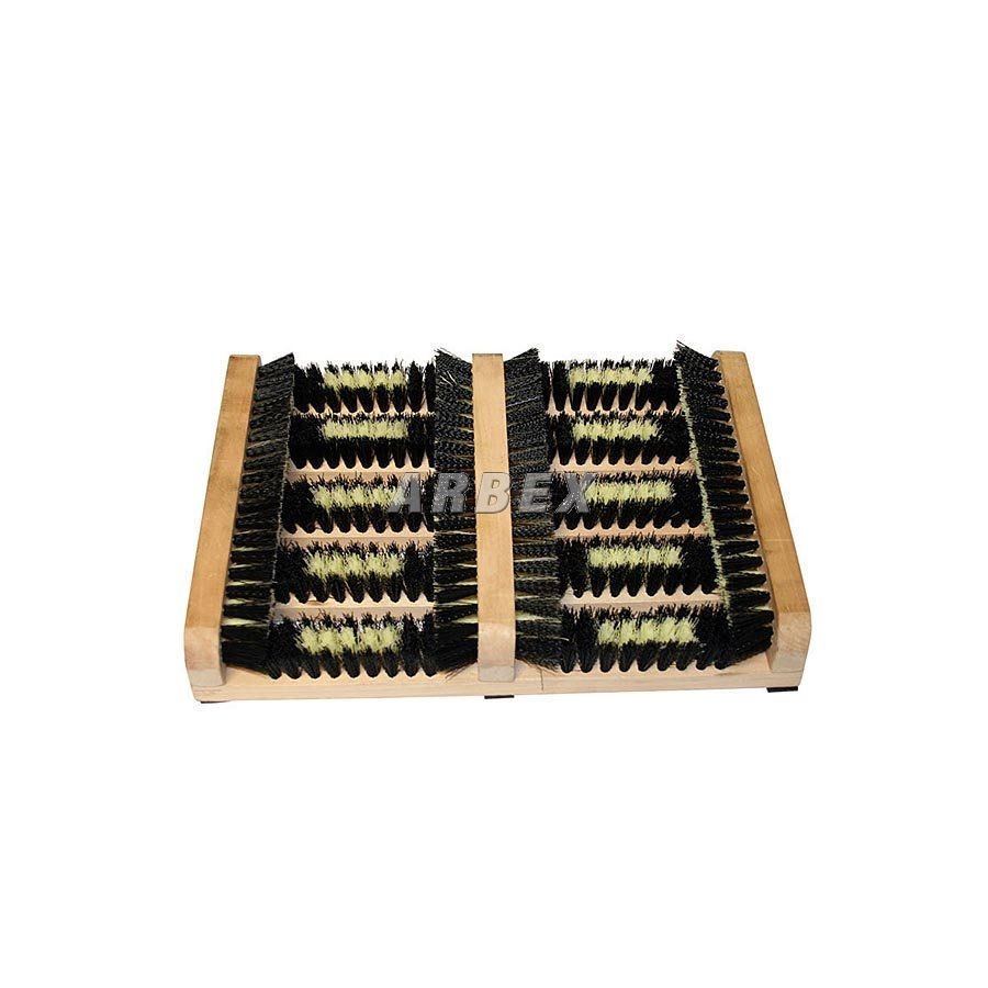 Dřevěný kartáčový čistič podrážek obuvi je praktickým pomocníkem pro udržení čistoty ve vnitřních i venkovních prostorech. Efektivně odstraňuje nečistoty, jako je bahno, sníh, prach nebo písek, čímž zamezuje jejich roznášení do interiéru. Díky několika pevně uchyceným kartáčům, které jsou strategicky rozmístěny, dokáže důkladně očistit nejen spodní část podrážek, ale i jejich boky. Čistič je vybaven gumovou protiskluzovou podložkou, která zabraňuje jeho pohybu po podlaze, což přispívá k pohodlnému a bezpečnému používání. Díky kvalitní dřevěné konstrukci a odolným kartáčům je zajištěna dlouhá životnost i při častém používání.