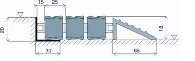 - Rohož je možné v úrovni podlahy uložit do připraveného zapuštěného otvoru osazeného hliníkovým rámem šířky 30, výšky 20 a tloušťky 3 mm nebo nerezovým rámem šířky a výšky 20, tloušťky 3 mm.