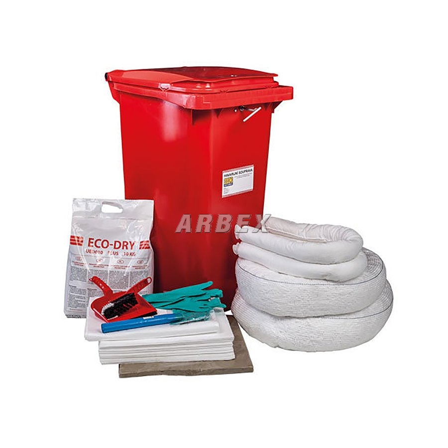 Kombinovaná havarijní souprava HS283 – 240 l představuje komplexní řešení pro rychlou likvidaci úniků kapalin včetně ropných látek a jejich emulzí. Sorbenty jsou přehledně uloženy v pojízdné plastové nádobě s možností uzamčení, což zajišťuje snadnou manipulaci a ochranu vybavení při skladování i přepravě.