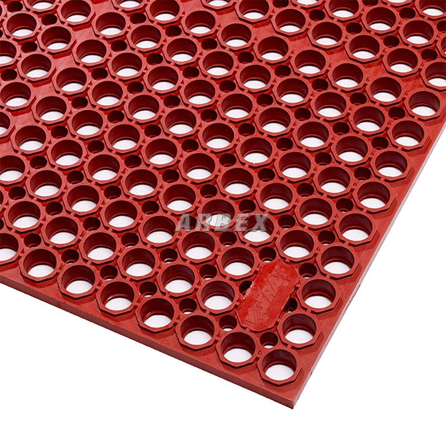 Tvrdá gumová směs garantuje dlouhou životnost rohoží. Povrch je silně neklouzavý. Rohože se díky své váze a součiniteli tření materiálu neposouvají. Kolmé okraje rohoží umožňují pokrývat prostory různých tvarů i velikostí spojováním rohoží za sebou i vedle sebe za použití gumových spojek, které naleznete v souvisejícím zboží.