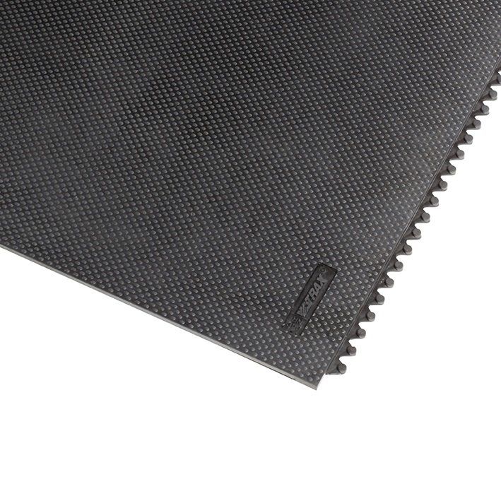 Černá gumová modulární rohož Slabmat Carré se řadí mezi speciální průmyslové rohože, jejichž hlavním účelem je tlumení nárazů za účelem ochrany podlahy a materiálu. Rohož pohlcující kinetickou energii chrání podlahy a těžké předměty před vzájemným poškozením. Masivní rohož snese vysoké statické zatížení. Neklouzavý strukturovaný povrch garantuje bezpečnou a pohodlnou chůzi. Houževnatá gumová směs činí rohož v podstatě nezničitelnou. Neobsahuje DOP, DMF, látky poškozující ozónovou vrstvu, silikon ani těžké kovy. Moduly rohoží o rozměru 91 cm x 91 cm lze použít k sestavení ostrůvku nebo jimi pokrýt pracoviště celoplošně. Volitelné hrany v černé nebo žluté barvě umožňují vytvořit vnitřní i vnější roh.