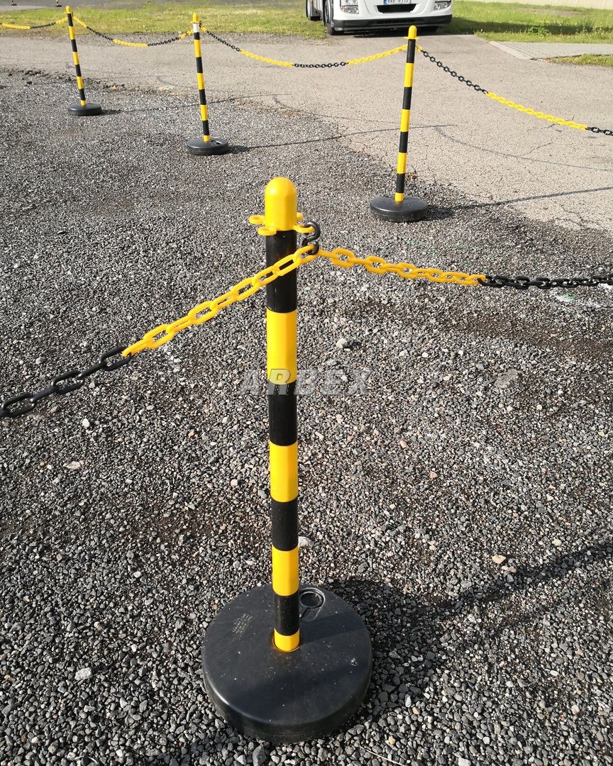 Černo-žlutý plastový vymezovací řetěz je vhodný k zajištění nebo vymezení prostorů, parkovišť, výstav apod. Slouží k rychlému a efektivnímu vyznačení, nebo uzavření venkovních či vnitřních prostor. K uchycení na vymezovací sloupky je nutné zakoupit spojku ve tvaru "S", kterou naleznete v souvisejícím zboží.