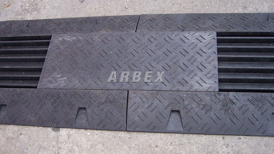 Kabelový most s víkem s drážkami pro 5 kabelů slouží jako ochrana kabelů, hadic, trubek na vozovkách, ve výrobních provozech, na výstavách, kulturních akcích atd. Nabízí vysokou nosnost, chemickou stálost, nesnadnou hořlavost, snadnou údržba, rychlou montáž a demontáž, protiskluznost a stabilitu.