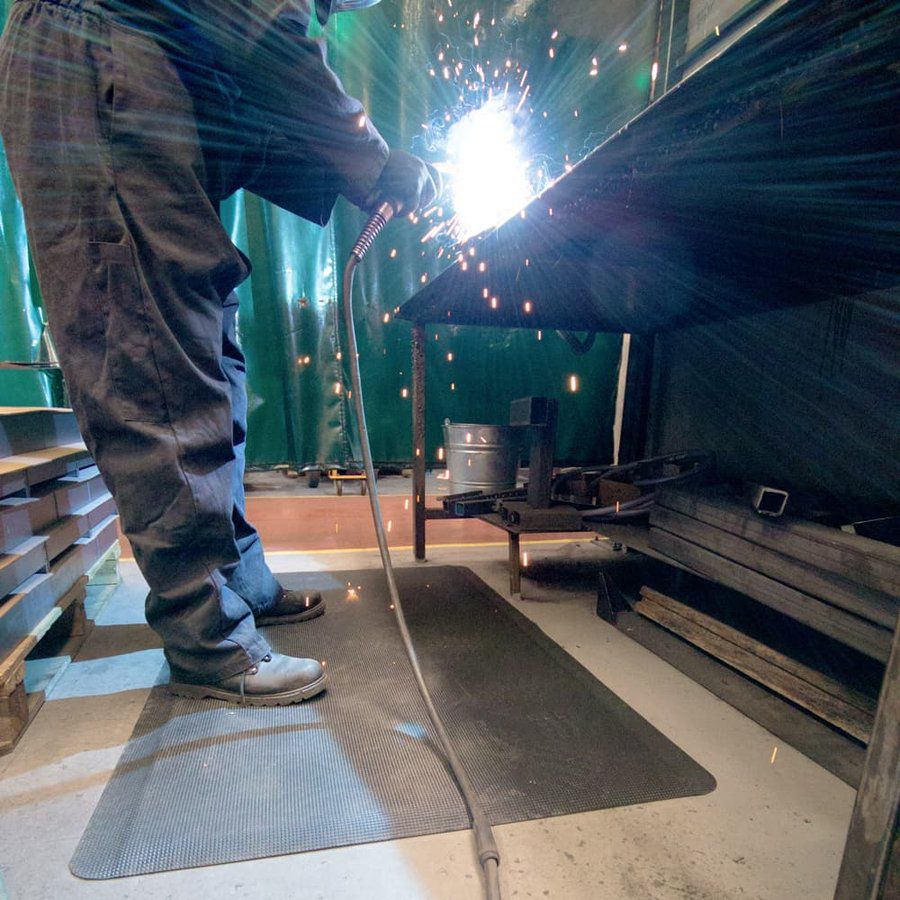 Černá protiúnavová rohož s vysokou odolností, určena pro svařovací pracoviště a další provozy, kde je důležitá odolnost a nehořlavost pracovní podložky. Protiúnavová svařovací rohož poskytuje úlevu při delším stání a zároveň chrání podlahu před jiskrami ze svařování.