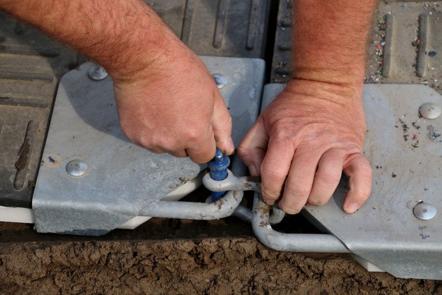 K manipulaci a vzájemnému spojení desek slouží kovové úchyty v rozících. Desky se fixují k sobě pomocí závěsných ok ve tvaru Omega, která vytvářejí flexibilní, ale extrémně pevný ocelový spoj. Tato oka jsou zahrnuta v ceně a jsou dodávána automaticky v počtu odpovídajícím velikosti vaší objednávky. Pokud plánujete specifické napojení desek (např. dlouhá cesta vs. široká plocha), doporučujeme toto specifikovat v poznámce objednávky.
