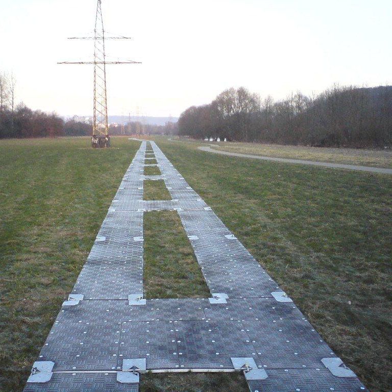 S extrémní nosností 1000 t/m2 tyto desky bezpečně přenášejí zatížení jeřábů, vrtných souprav a těžké stavební techniky, čímž zabraňují jejich uvíznutí nebo poškození podloží. Systém je vybaven integrovanými ocelovými úchyty v rozích, které umožňují pevné a spolehlivé spojení jednotlivých desek do souvislých stabilních ploch nebo komunikací.