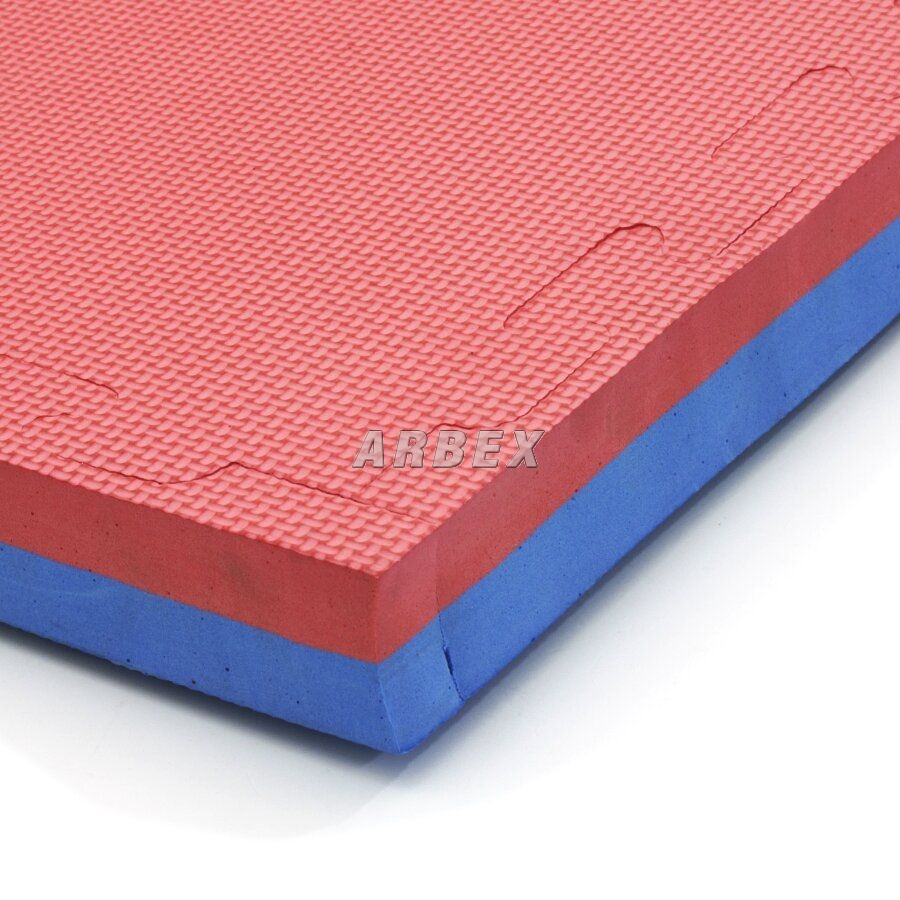 Červeno-modrá modulární pěnová podložka Tatami je oboustranná podložka tvaru puzzle, přičemž jednotlivé díly do sebe přesně zapadají. Výhodou Tatami podložky je protiskluzová pěna a měkký dotek. Lze ji využít pro všechny druhy sportů, kde se cvičí naboso.