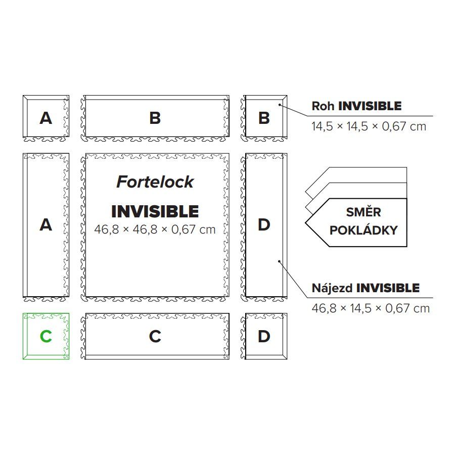 PVC podlahy Fortelock Invisible se vyznačují především těmito vlastnostmi - vysoká odolnost materiálu vůči zátěži, protiskluzný povrch, perfektní zámkový systém, který pevně drží dlaždice při sobě, chemická odolnost, speciálně navržen dezén, který usnadňuje čištění a v neposlední řade systém odvodných kanálků Air Flow, který brání zadržování vody pod podlahou a umožňuje ji větrat. To je jen pár výhod, na které se můžete spolehnout po instalaci PVC dlažby Fortelock Invisible.