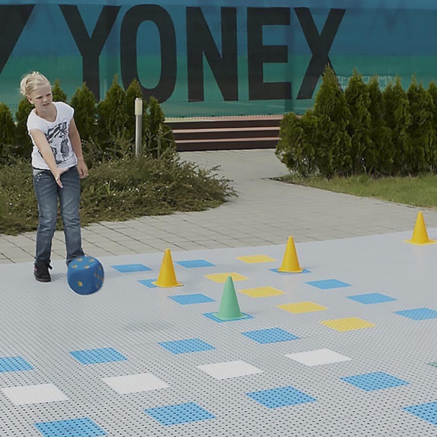 Podlahový systém Tile umožňuje mimo běžných aplikací realizovat také obří verze některých stolních her. Pro děti nabízíme populární hru Člověče, nezlob se!