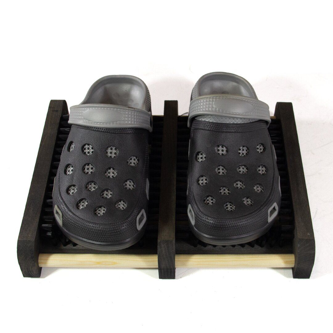 Dřevěno-plastový kartáčový čistič podrážek obuvi efektivně zbaví vaše boty nečistot jako je bahno a sníh. Na spodní části je gumová protiskluzová podložka, která zamezuje pohybu čističe bot po podlaze. Díky použití několika čistících kartáčů a jejich vhodnému rozložení je schopen očistit i bok podrážek obuvi.