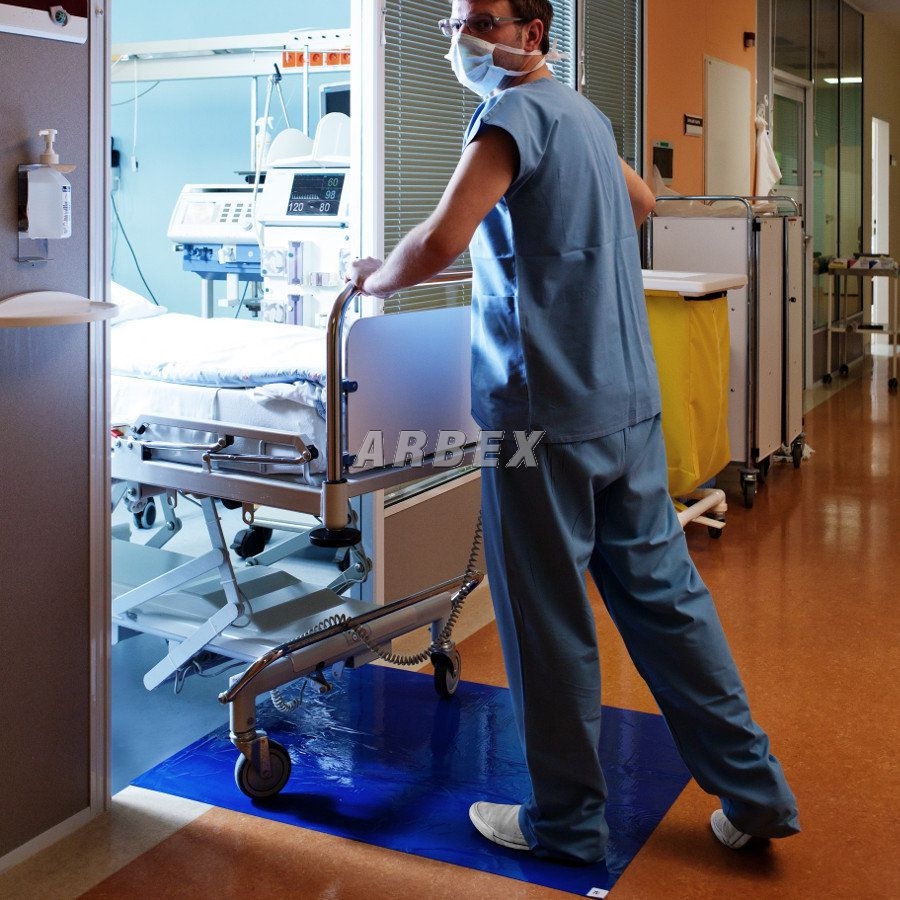 Dekontaminační hygienické lepící antibakteriální rohože Antibacterial Sticky Mat jsou vyrobeny z vrstvené polyethylenové folie potažené akrylátovým, vodou rozpustitelným lepidlem. Použité materiály jsou zdravotně nezávadné a neobsahují silikon ani čpavek. Dekontaminační rohože se využívají primárně před vstupy do čistých prostor nebo vstupy do exponovaných prostor.