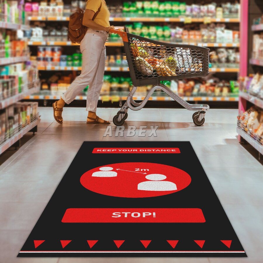 Rohož s digitálním potiskem propagující sociální distancování - způsob, jak prokázat, že berete zdraví a bezpečnost vážně.
