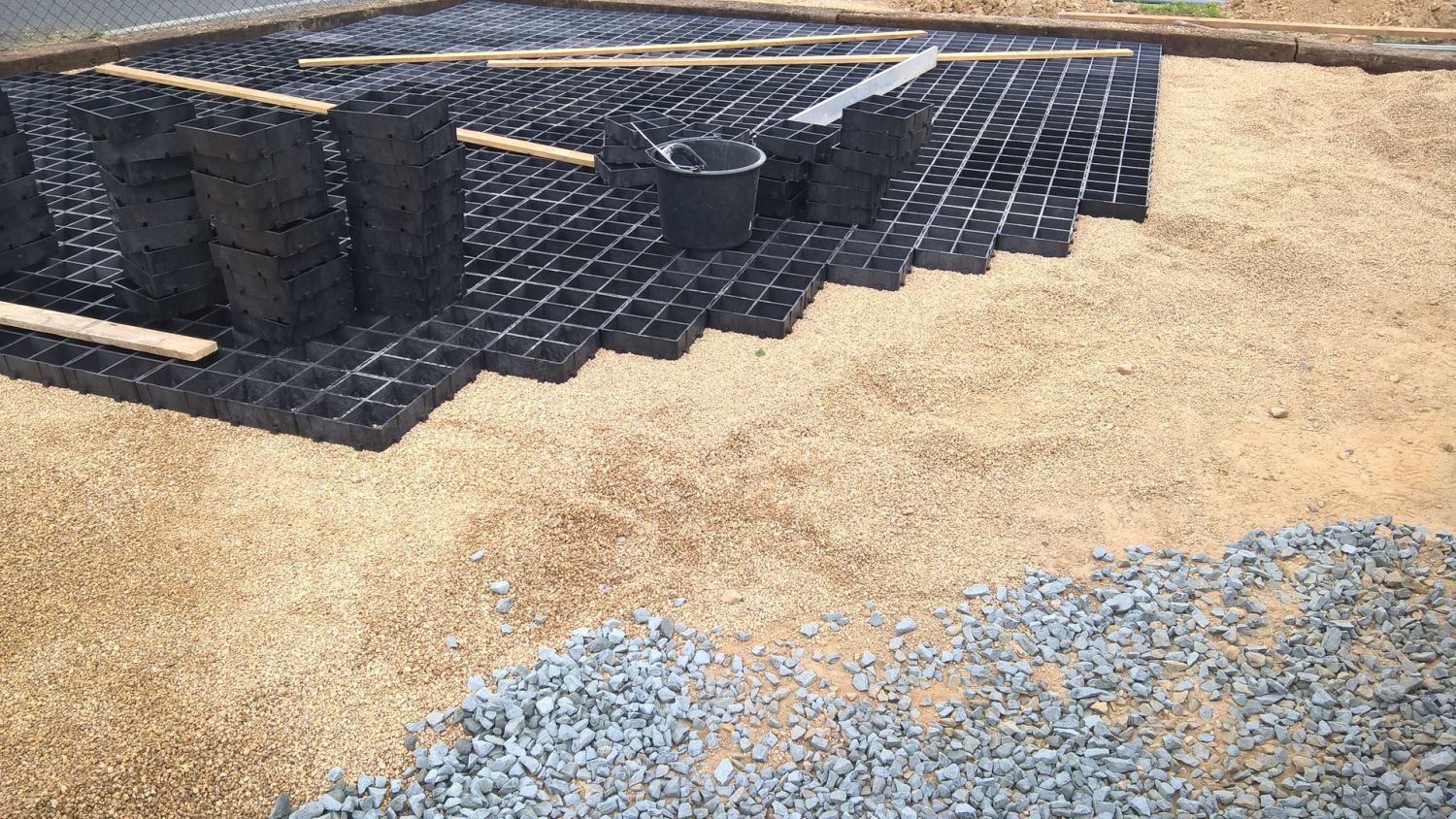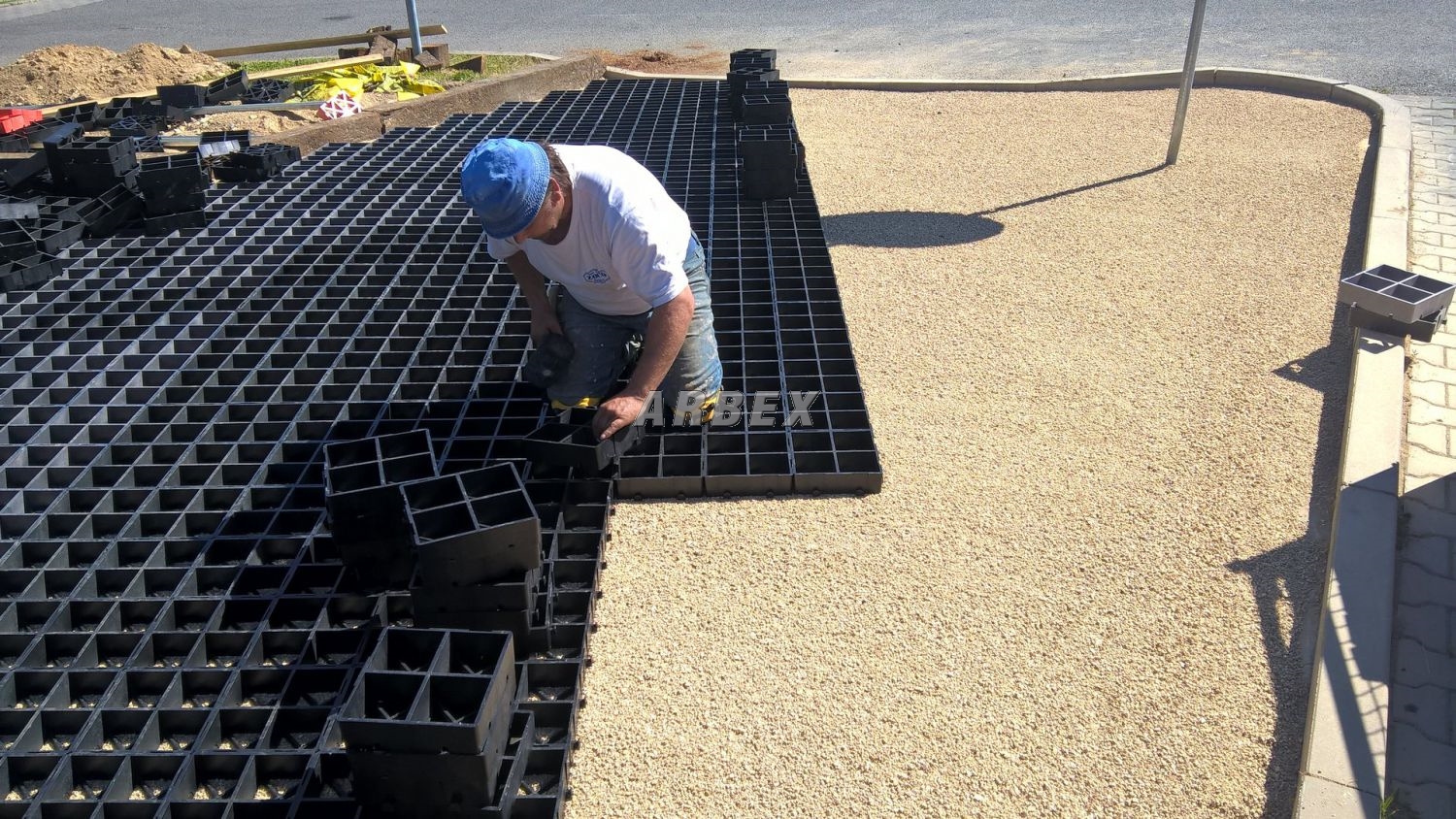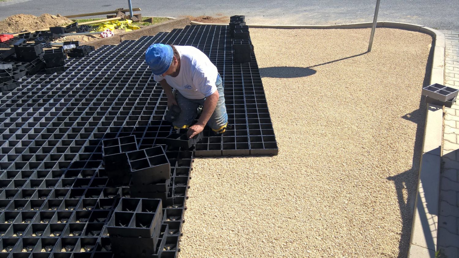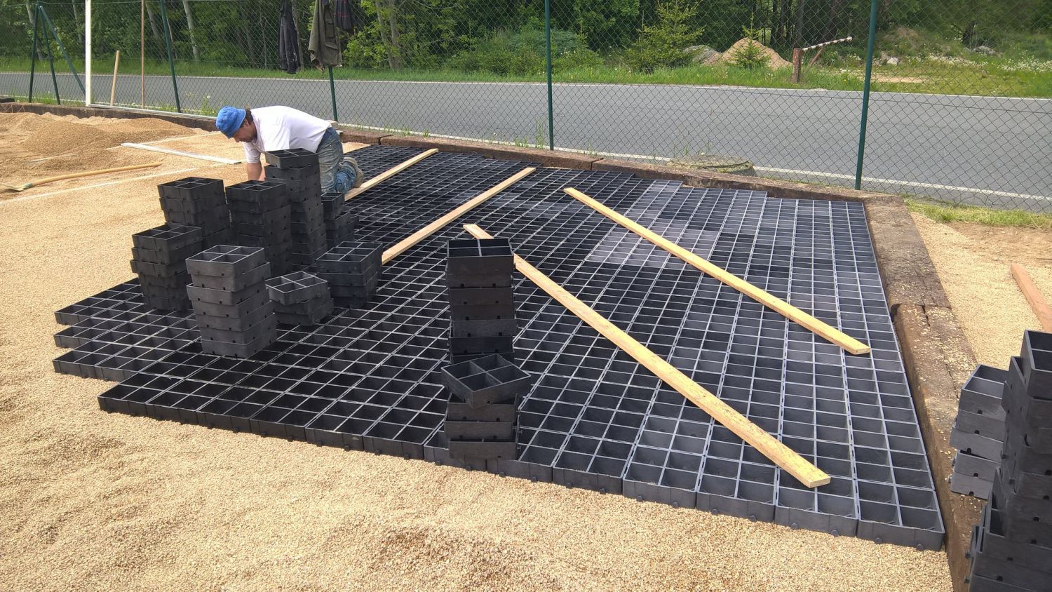 Při pokládání plastových dlaždic ProGrass MAX pro účely parkovacího stání postupujte následovně (nákres vrstev naleznete v galerii):