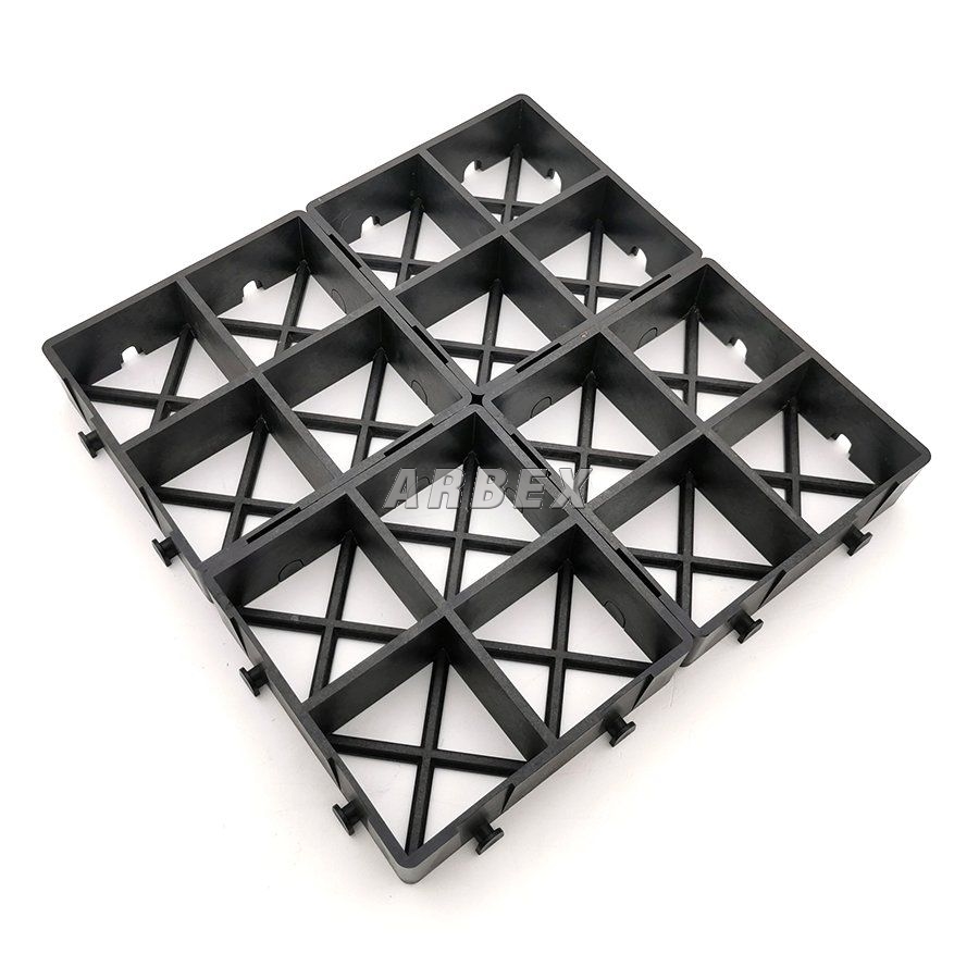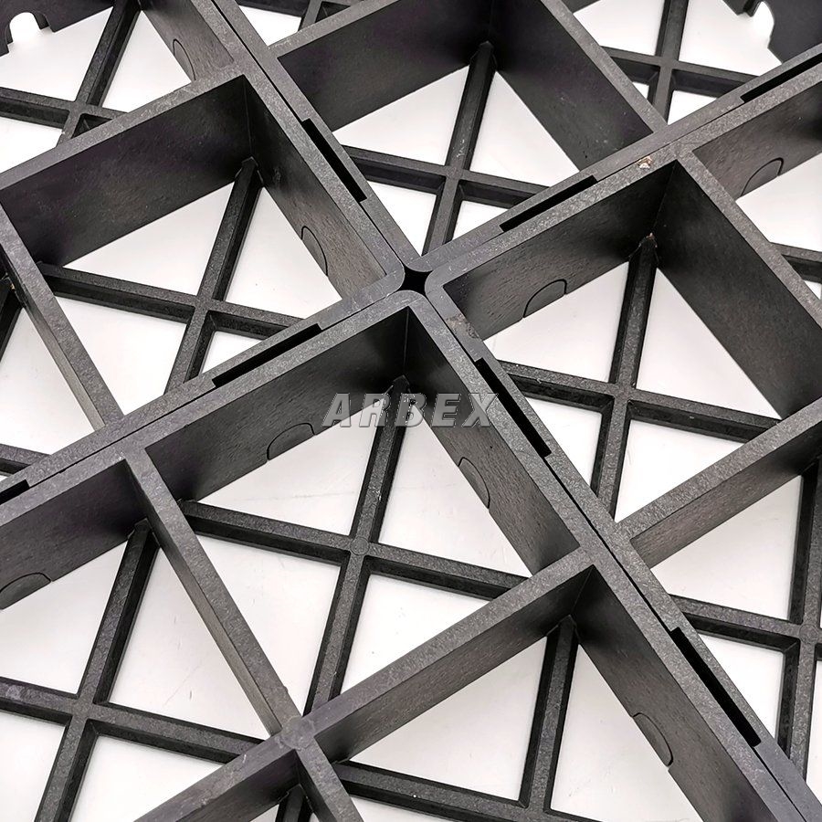 Jednotlivé dlaždice se navzájem spojují bezpečnostní zámky, které zamezují rozjetí tvárnic - patentovaný bezpečnostní spojovací systém a vytvářejí tak jednu spojitou plochu, která zajišťuje rovnoměrnější rozložení zatížení, což mimo jiné zamezuje vzniku vyježděných kolejí od aut. Zatravňovací dlažba ProGrass MAX je vysoká 6 cm, takže poskytuje dostatek prostoru pro kořeny trávy a je tak ideální pro zatravnění, dá se však vyplnit i štěrkem či jiným kamenivem, keramzitem, pískem, apod.