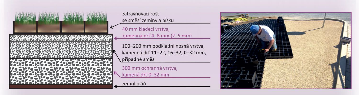 | vlastnost | zátěžová, venkovní, zatravňovací, zámkový systém |