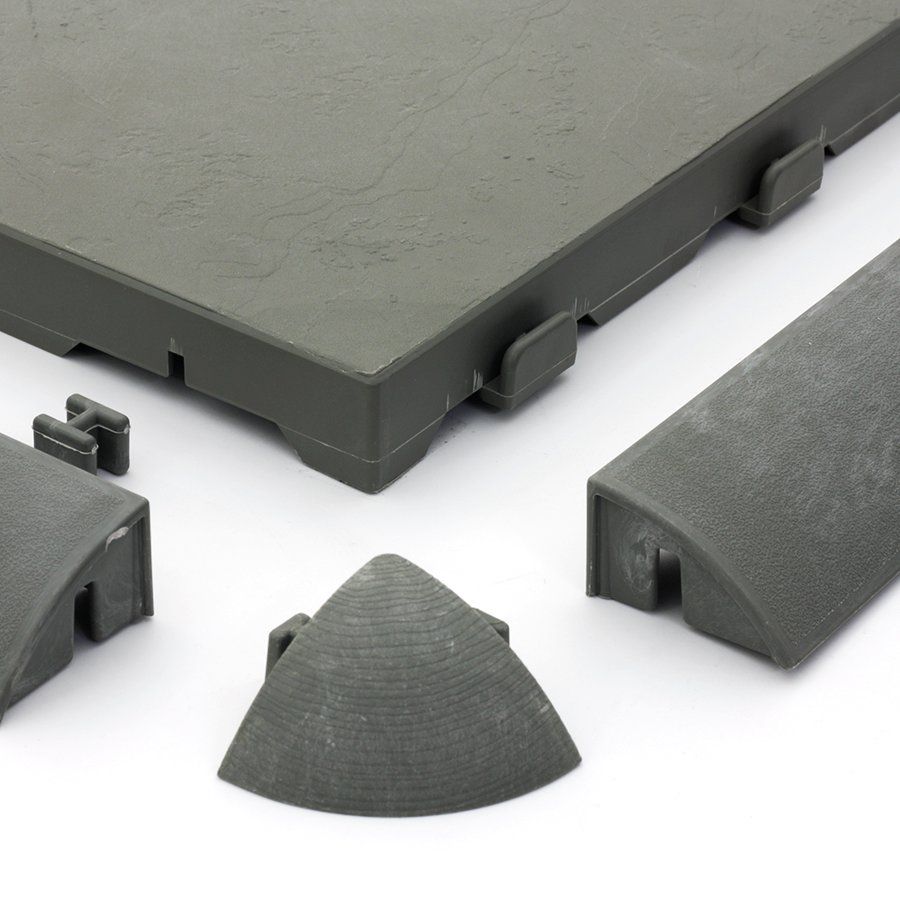 Nájezd na zámkovou terasovou dlaždici Linea Easy s břidlicovým dezénem vyrobený z polypropylenu, jež je obohacen o uhličitan vápenatý k dosažení správné tuhosti nájezdu.