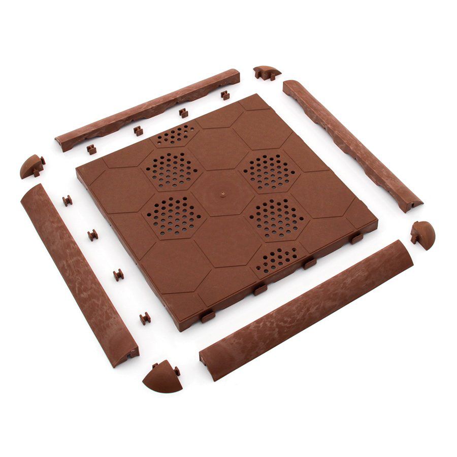 Nájezd na zámkovou terasovou dlaždici Linea Easy s dezénem plástve vyrobený z polypropylenu, jež je obohacen o uhličitan vápenatý k dosažení správné tuhosti nájezdu.