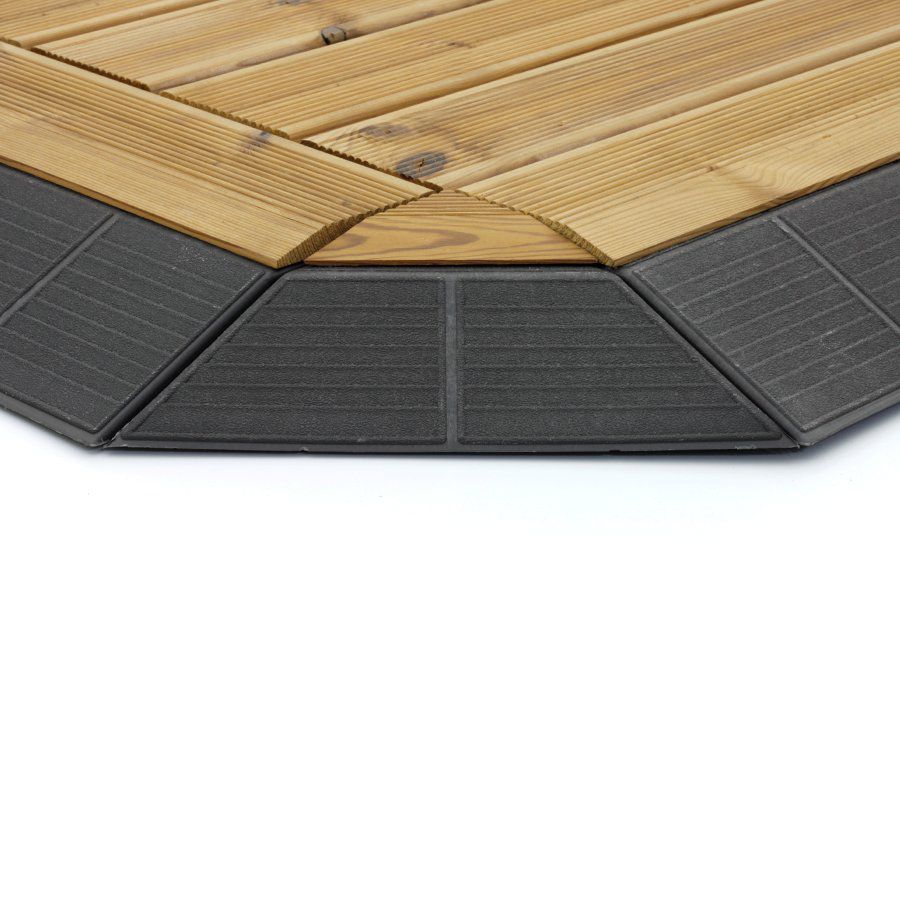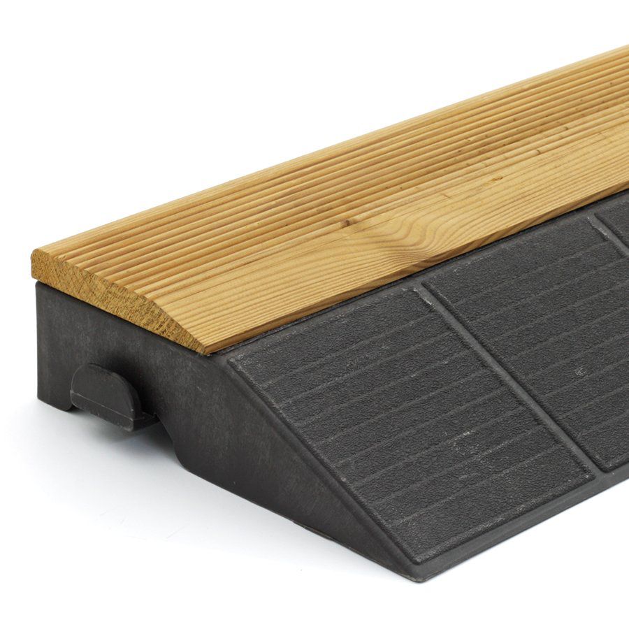 Terasová dlažba Linea Combi-wood představuje dokonalou harmonii mezi estetikou a funkčností. Dlaždicový nájezd s povrchem ze Švédské borovice a robustní plastovou drenážní základnou zajišťuje stabilitu na každém povrchu. Nájezd na dlaždici je možné použít jak v interiéru domu, na terase tak i u bazénu. Jakékoliv prostranství se tedy může proměnit na schůdné „se stylem“. Zámkový systém umožňuje rychlý a jednoduchý způsob pokládky i rozebrání. Kombinace dřeva, které je speciální metodou tepelně zpracováno, aby bylo odolné vodě i škůdcům, a samoodvodňovací plastové základny dlaždice pak vytváří dokonalý celek s dlouhodobou životností.