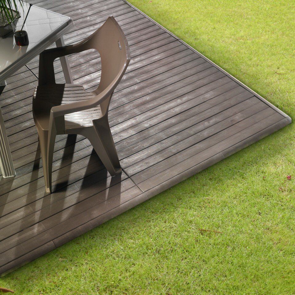 Nájezd pro dlaždice Woodenlike vyroben z polypropylenu s dezénem imitujícím dřevo je vhodný pro venkovní použití, například na zahradách, v altánech, v kempech atp. Nájezd pro dlaždice je samo-upínací a nepotřebuje tak žádný základ, upevňovací systém ani nářadí.
