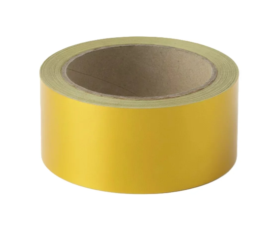 Žlutá reflexní výstražná páska je vyrobena z plastohliníkové PET fólie kašírované hliníkovou vrstvou. Díky plastohliníkovému základu je reflexní páska odolná proti přetržení, zároveň je však velmi ohebná a hladce se přizpůsobí jakýmkoliv záhybům, dobře tak přilne i na nerovném povrchu. Z jedné strany je páska potažena samolepicí vrstvou trvanlivého lepidla odolného proti stárnutí.