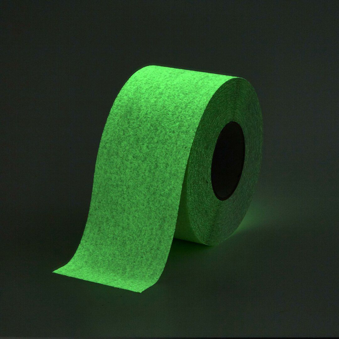 Aby byla zajištěna vysoká viditelnost protiskluzové pásky, je vyrobena ze dvou oddělených fotoluminiscenčních vrstev, fotoluminiscenční samolepící plastové základny a vrstvy z pružné pryskyřice (držící korundový materiál), která je impregnovaná fotoluminiscenční pastou.