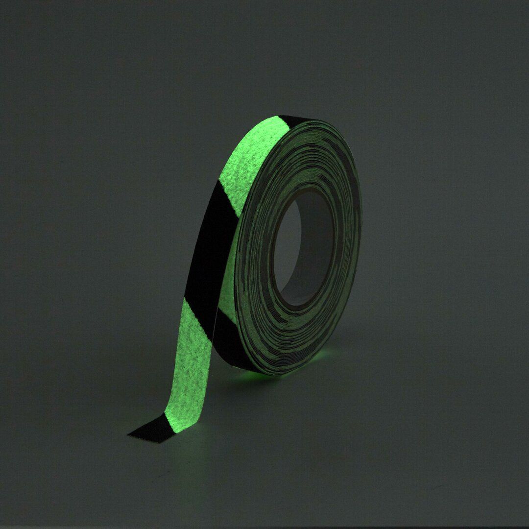 Fotoluminiscenční protiskluzová páska ve výstražné verzi se střídajícími se světlými a tmavými vysoce kontrastními šikmými pruhy plní svou funkci jak za běžných světelných podmínek, tak ve tmě. Páska tedy vytváří bezpečnostní prvek ve dne v noci. Ideální je pro použití na chodnících, schodech, požárních schodech i kolem strojů, které by mohly být za špatných světelných podmínek přehlédnutelné.