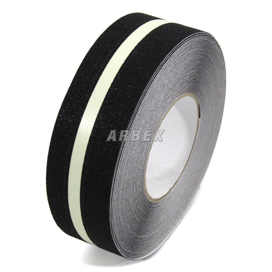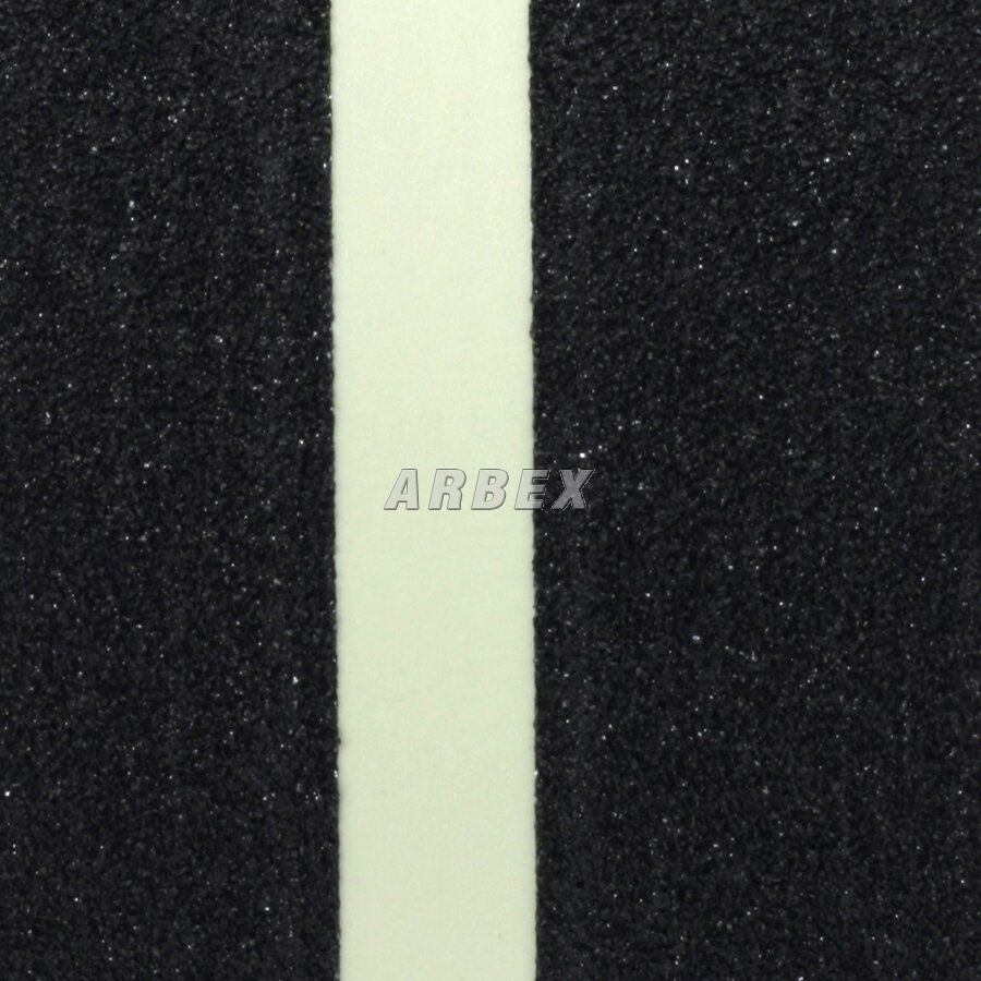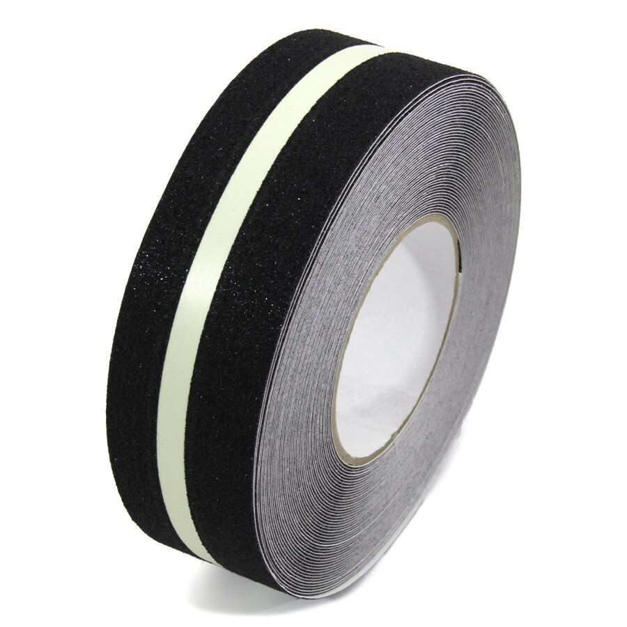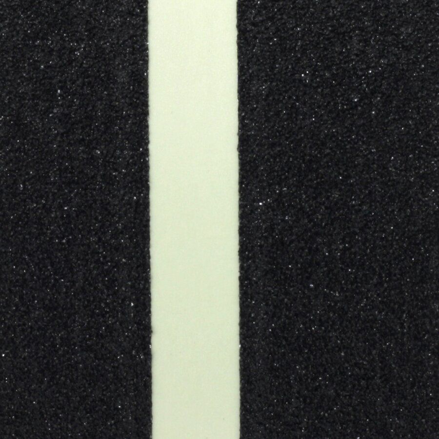 Bezpečnostní protiskluzová páska se středovou fotoluminiscenční linkou je cenově velmi efektivní varianta tohoto typu pásky. Fotoluminiscenční prášek a pasty jsou extrémně drahé, některé odrůdy vyšší kvality stojí dokonce více než zlato, středová linka tedy ušetří mnoho nákladů na výrobu. Okraje pásky jsou pak pokryty standardním černým korundovým potahem, který zajišťuje vynikající úroveň přilnavosti. Koeficient tření této pásky převyšuje současné předpisy.