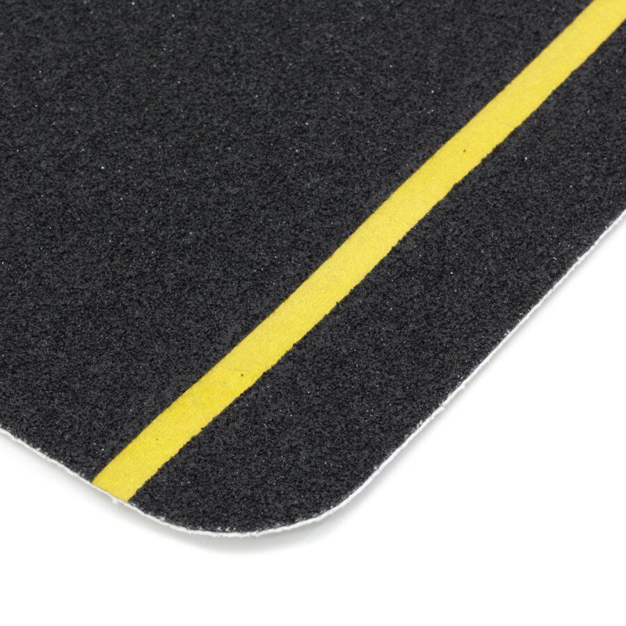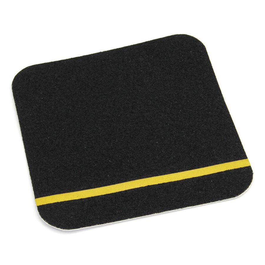 Tyto čtvercové protiskluzové podlahové dlaždice mají na jedné straně žlutý reflexní proužek, který lze použít např. jako náběžnou hranu na schodištích nebo římsách, čímž ji velmi efektivně zvýrazní i za špatných světelných podmínek a zlepší tak bezpečnost daného prostoru. Tyto dlaždičky je možné přilepit i přes 90° hrany.