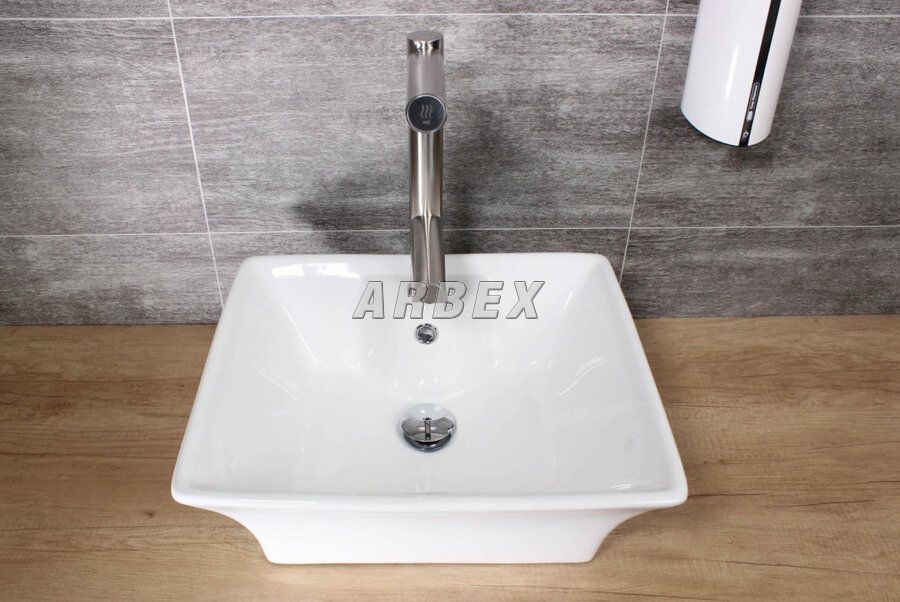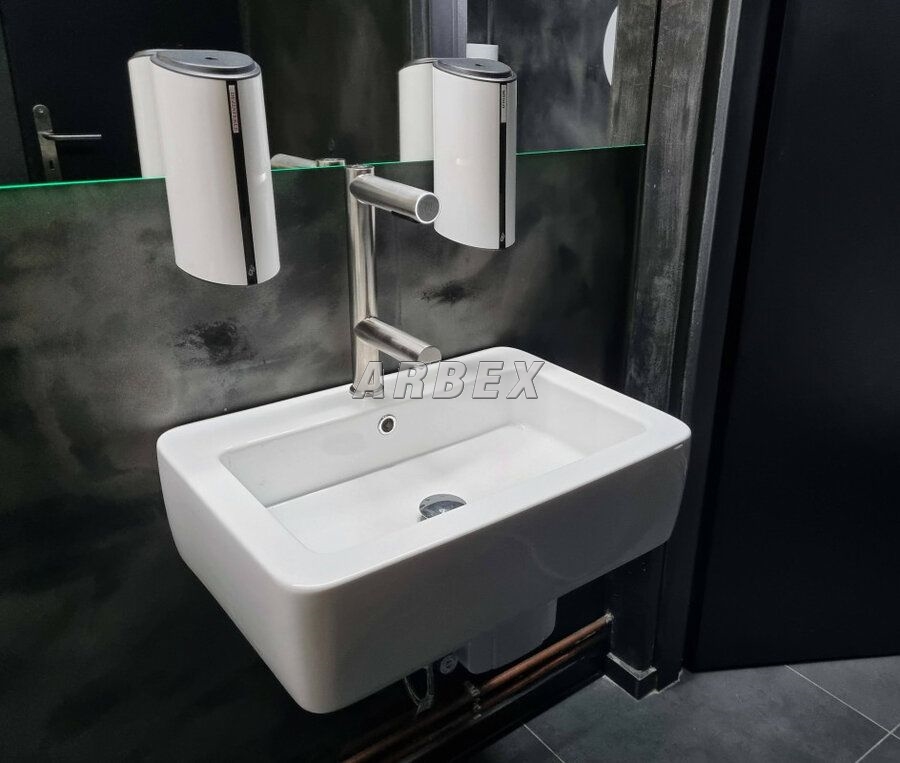Tělo baterie s vysoušečem ve tvaru písmene F je vyrobeno z kvalitní kartáčované oceli. Jednotka vysoušeče je bezpečně ukryta pod umyvadlem, mimo dosah případných vandalů. Vysoušeč tak zároveň zbytečně nezabírá místo.