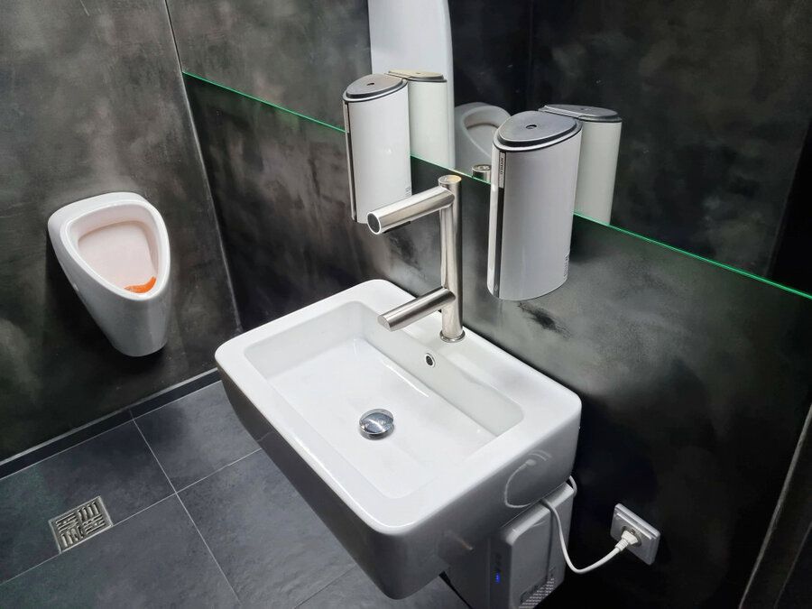 Hygienické umytí a osušení rukou nebylo nikdy jednodušší. Vložením rukou pod vodovodní baterii začne automaticky téct voda o předem nastavené teplotě. Hned nad automatickou baterií se nachází vyústění trysky vysoušeče. Spuštění je také bezkontaktní, stačí vsunout ruce a pohybovat s nimi podobně jako při mytí. Na přední části ramena vysoušeče se nachází podsvětlený kroužek. Kroužek pulzuje bílým světlem, čímž upozorňuje na funkci vysoušeče. Při používání svítí modře.