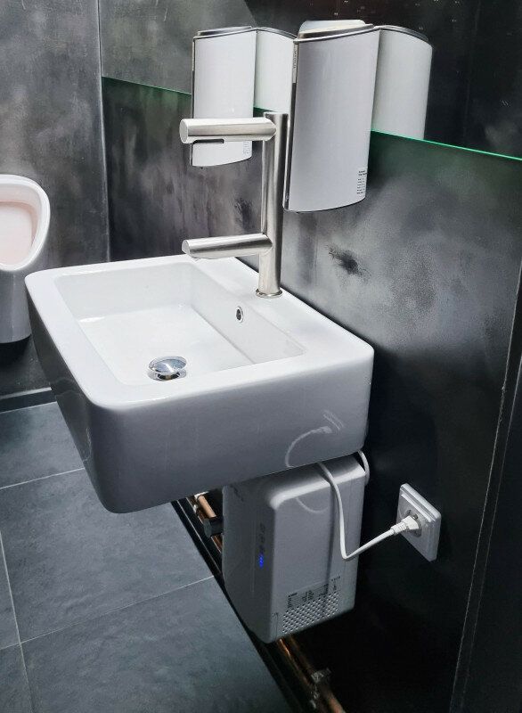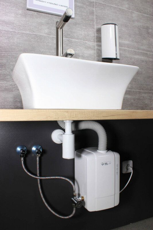 Instalace vysoušeče ve vodovodní baterii Jet Dryer DUO je možná bez nutnosti zásadních stavebních úprav. Jednotka se jednoduše postaví pod umyvadlo. Další možností je montáž na závěsnou desku.