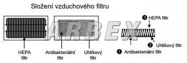 HEPA filtr je umístěn uvnitř šuplíku na přední straně přístroje.