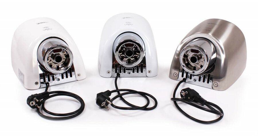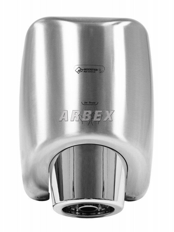 Osoušeč rukou BOOSTER se od jiných osoušečů vyznačuje výraznou pochromovanou tryskou kruhového tvaru. Díky silnému 550 W motoru je vysušení rukou velmi rychlé.