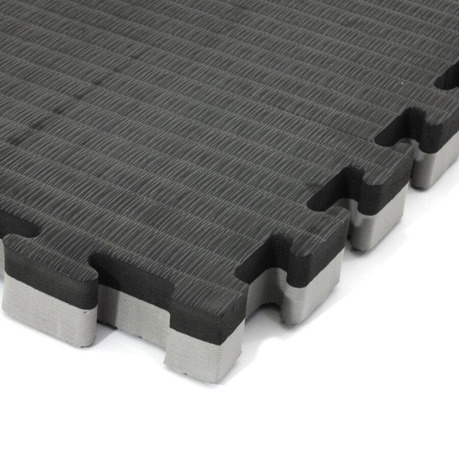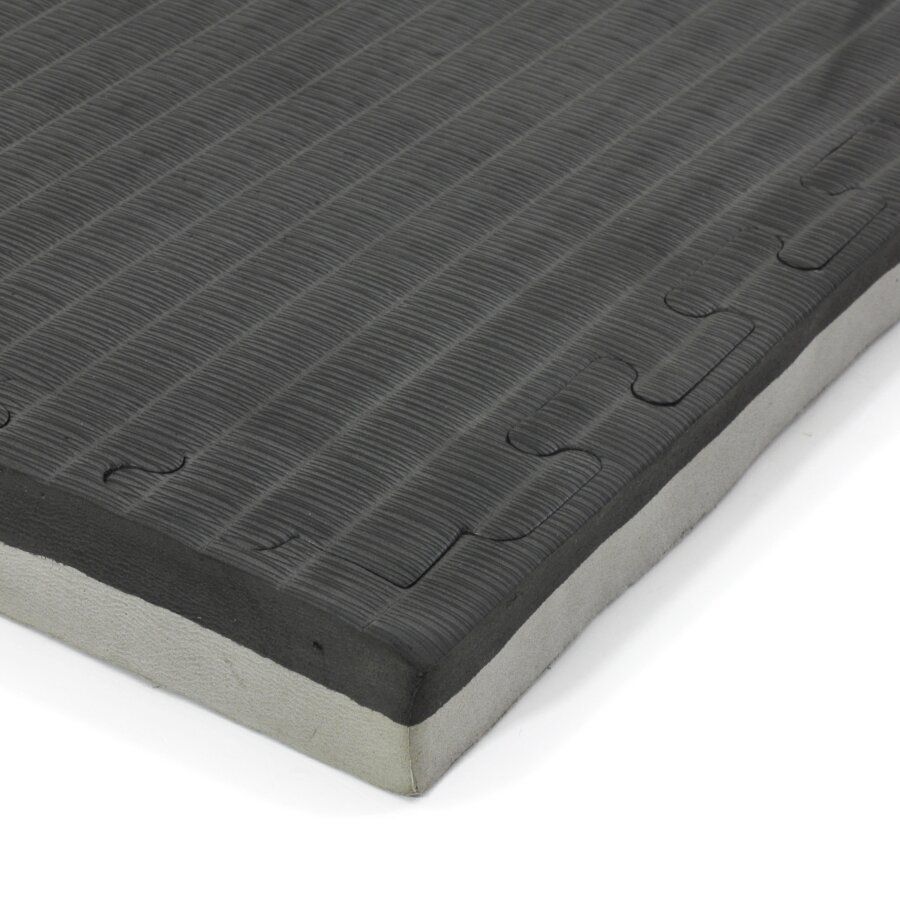 Šedo-černá modulární pěnová podložka Tatami je oboustranná podložka tvaru puzzle, přičemž jednotlivé díly do sebe přesně zapadají. Výhodou Tatami podložky je protiskluzová pěna a měkký dotek. Lze ji využít pro všechny druhy sportů, kde se cvičí naboso.