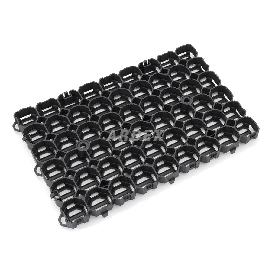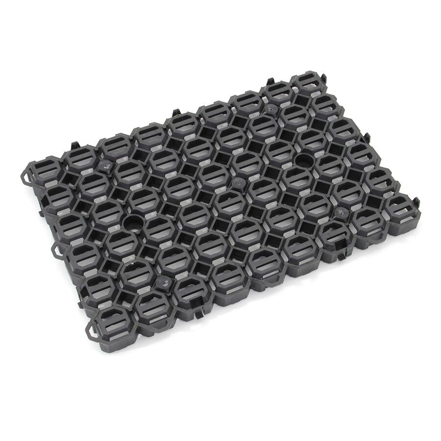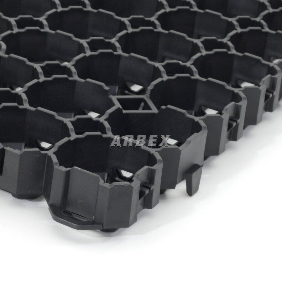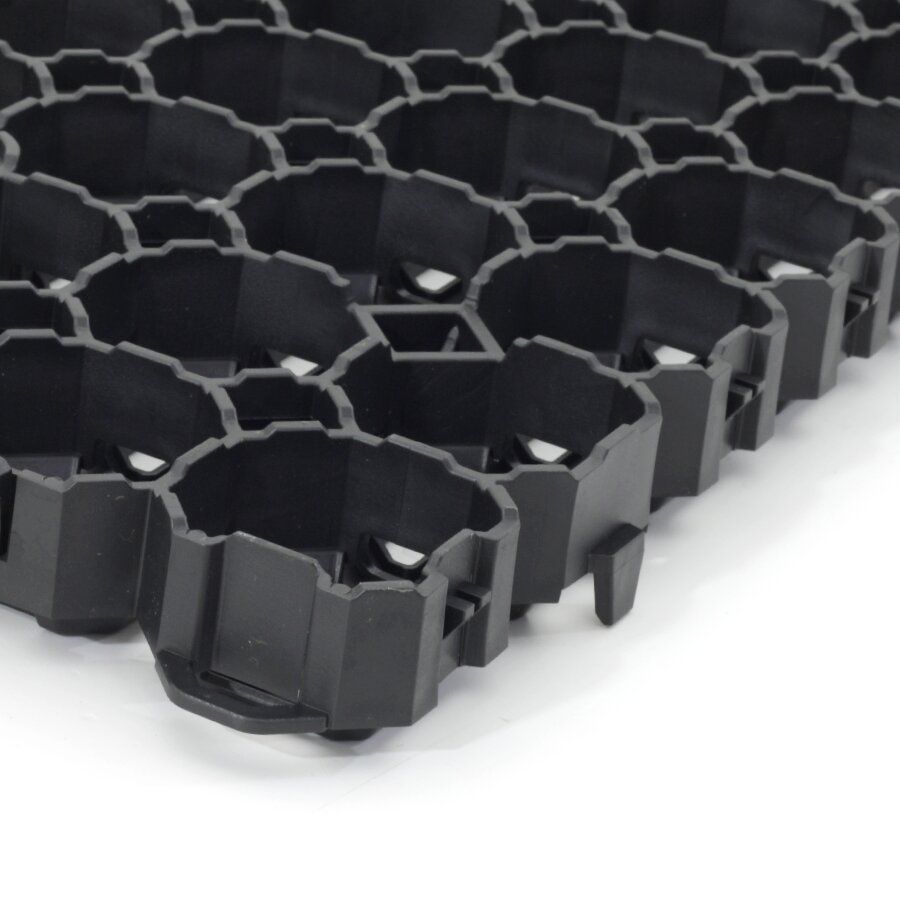 Jedinečný design zabraňuje posouvání vrchního sypkého materiálu ale zároveň díky otvorům je drenáž podlahy plně zajištěna. Díky tomuto provedení ve tvaru pláství medu drží výplňový materiál pevně pohromadě. Mřížky na lícní straně mají protiskluzové výčnělky a po obvodu jsou zámky pro spojování s ostatními zatravňovacími mřížkami.