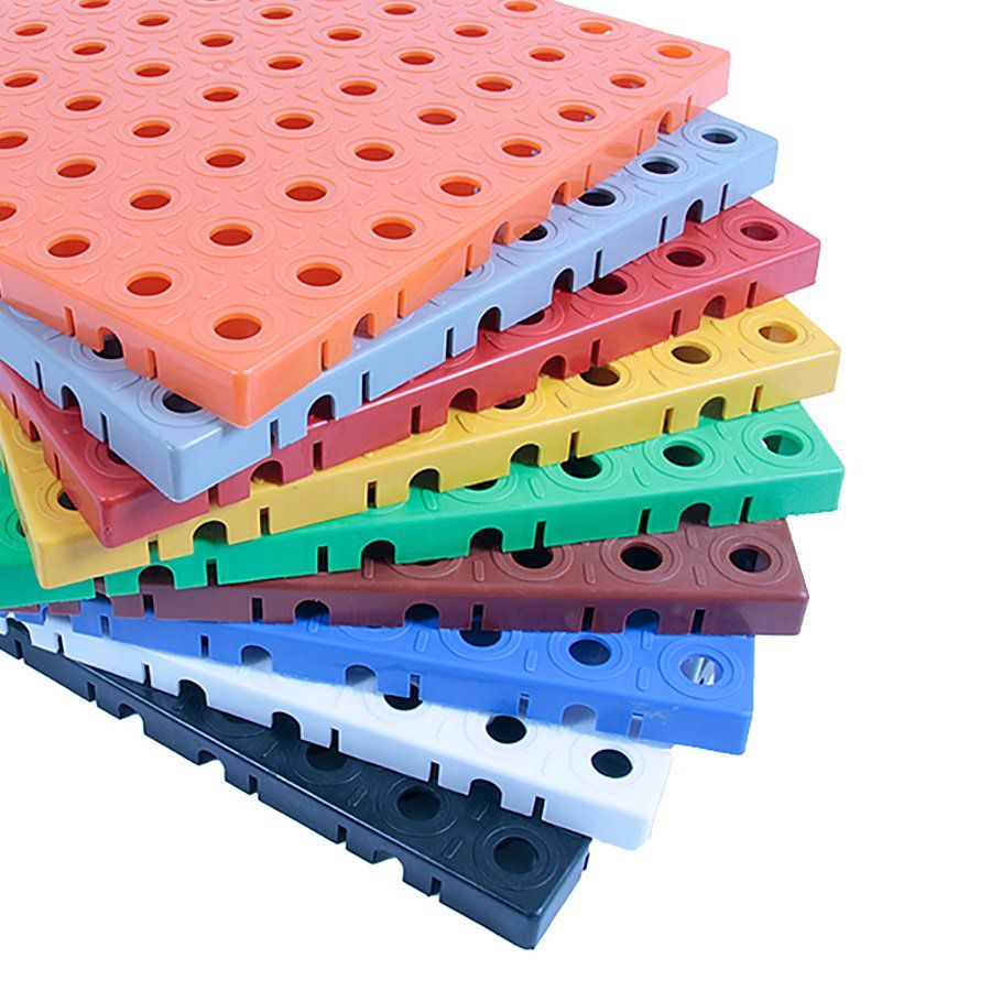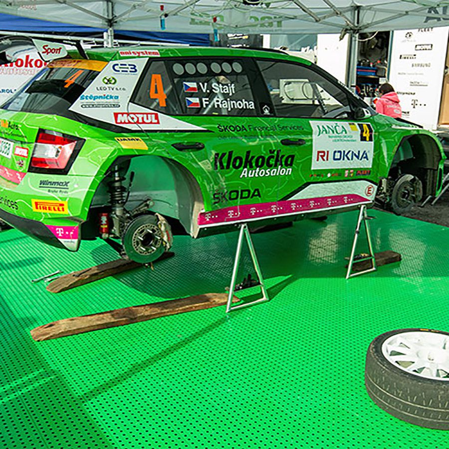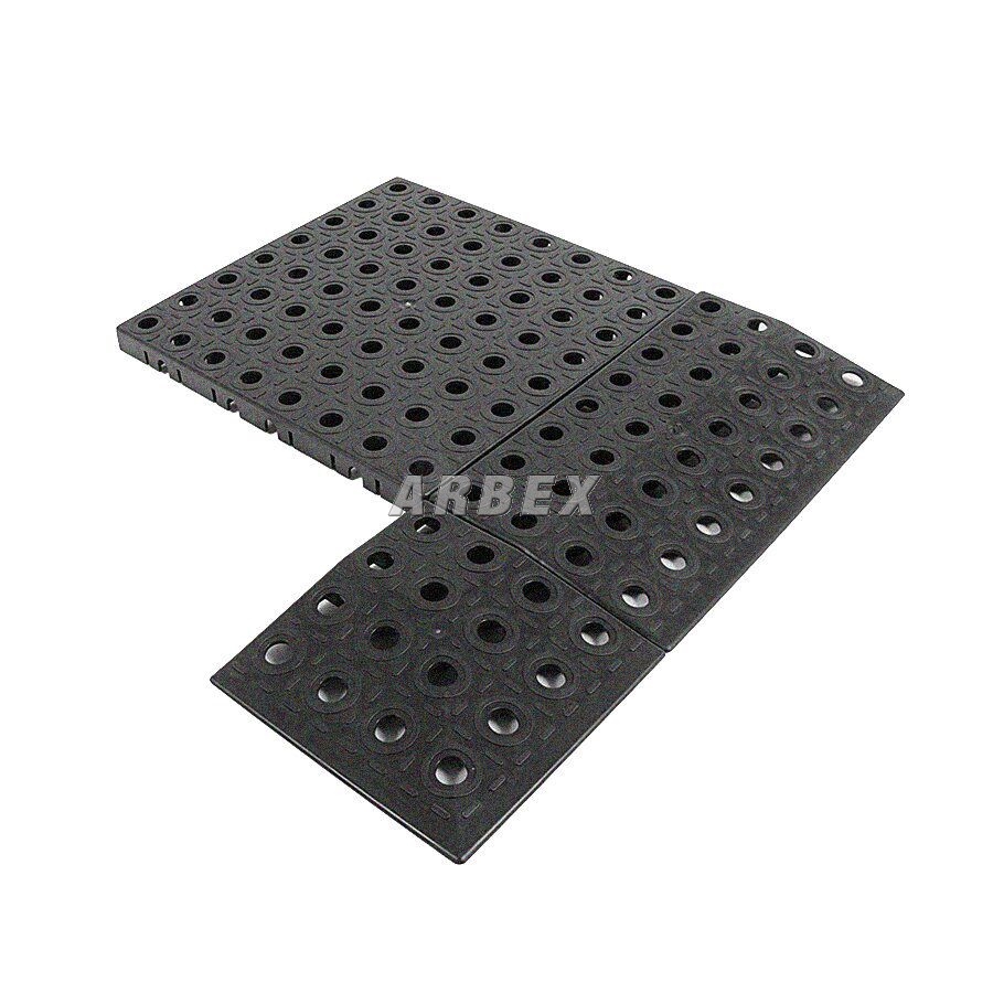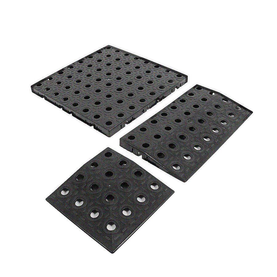 Základním prvkem systému je deska 250x250 mm a pro vytvoření nájezdových hran se využívají rovné a rohové nájezdy. Jednotlivé díly systému se spojují plastovými spojkami, které jsou v příslušném počtu u každého modulu zahrnuty v ceně. Provedení povrchu všech dílů je protiskluzové s otvory o průměru 12 mm, výška desek je 16 mm.