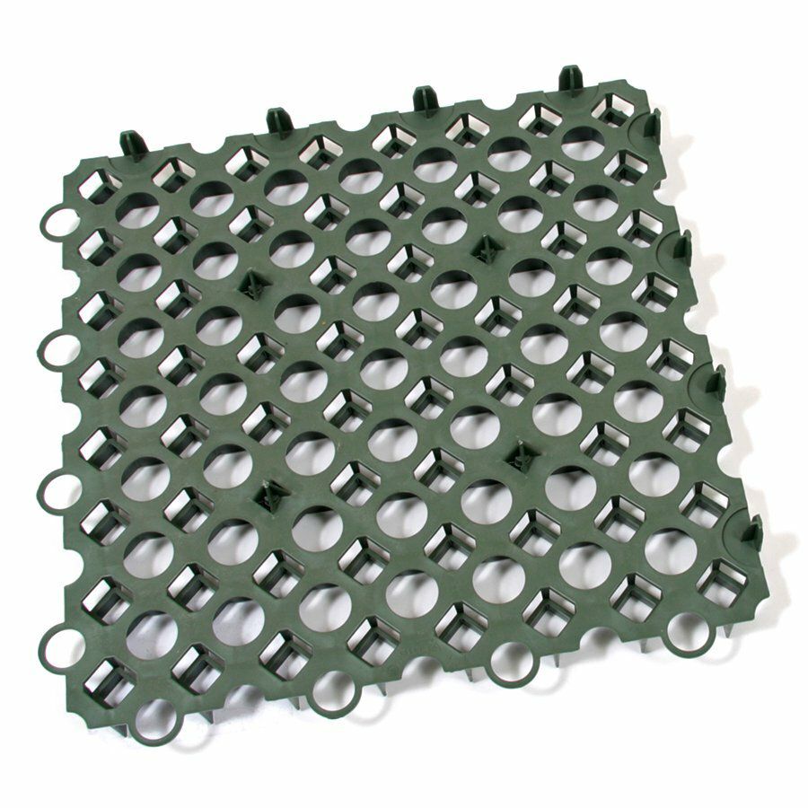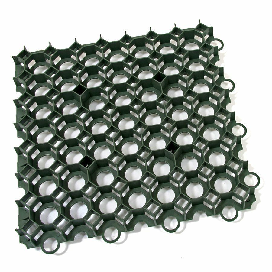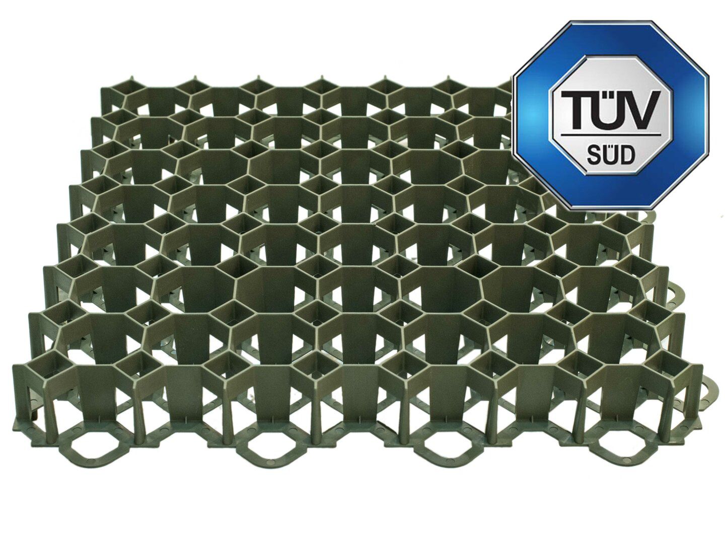 Prostor v mřížkách můžete nechat i prázdný. Mřížky na lícní straně mají protiskluzové výčnělky, na spodní straně jsou opatřeny fixačními hroty, po obvodu jsou zámky pro spojování s ostatními zatravňovacími mřížkami. Jedinečný otevřený design umožňuje volný růst travních kořenů ve všech směrech. Buňky mřížek jsou částečně uzavřené ze spodní strany dlažby, tedy nedochází k migraci výplně.
