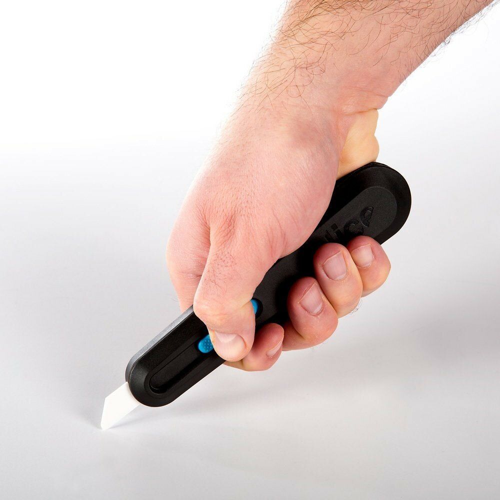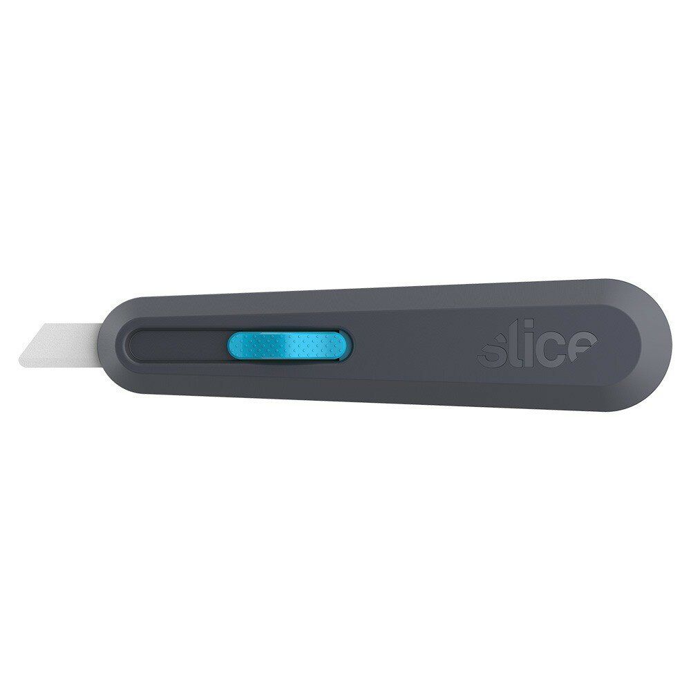 Samozatahovací univerzální nůž Slice SMART 10558 nabízí dvě nejnovější inovace: mechanismus Smart Retract a posuvník Ergo Pull. Jedná se o nejpokrokovější bezpečnostní nůž s několika preventivními opatřeními pro nejvýšší možnou bezpečnost při řezání. Smart Retract stáhne čepel zpět do pouzdra, jakmile ztratí kontakt s řezaným materiálem, i když máte stále prst na jezdci. Ergo Pull snižuje námahu, která vám umožní posouvat se a řezat ve stejném směru.