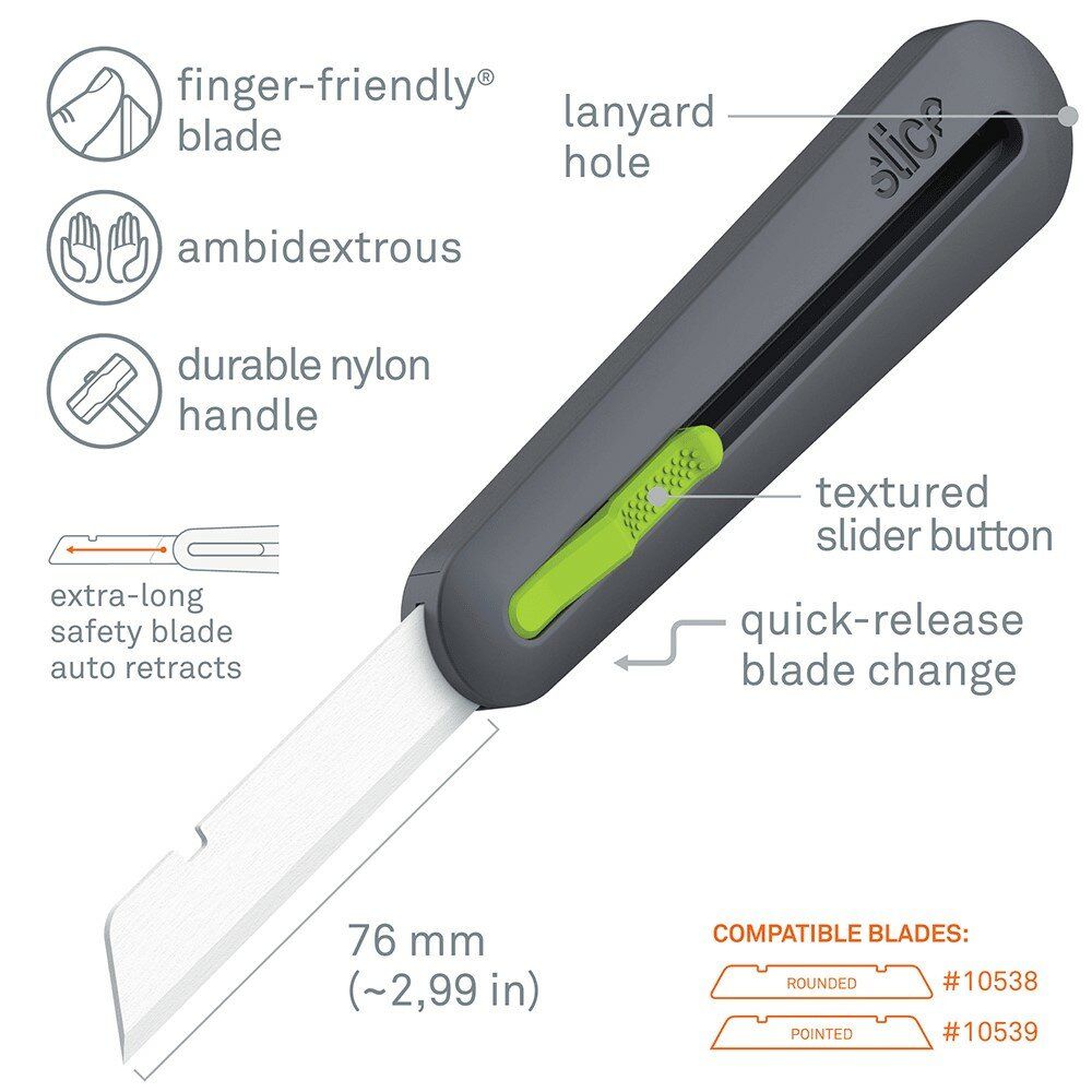Samozatahovací průmyslový univerzální nůž Slice 10560 reaguje na poptávku zákazníků po dlouhém ostří na silné pěny v průmyslovém prostředí. Odkrytá čepel je 7,5 centimetrů dlouhá, což umožňuje uživateli řezat silnější materiály. Po dokončení řezu se pro bezpečnost uživatele čepel, tohoto keramické bezpečnostní nože, stáhne zpět. Tento řezací nástroj je především přizpůsoben k průmyslovému použití s jedním cílem: udělat řezání bezpečnější tak, aby to nebylo na úkor efektivity nástrojů.