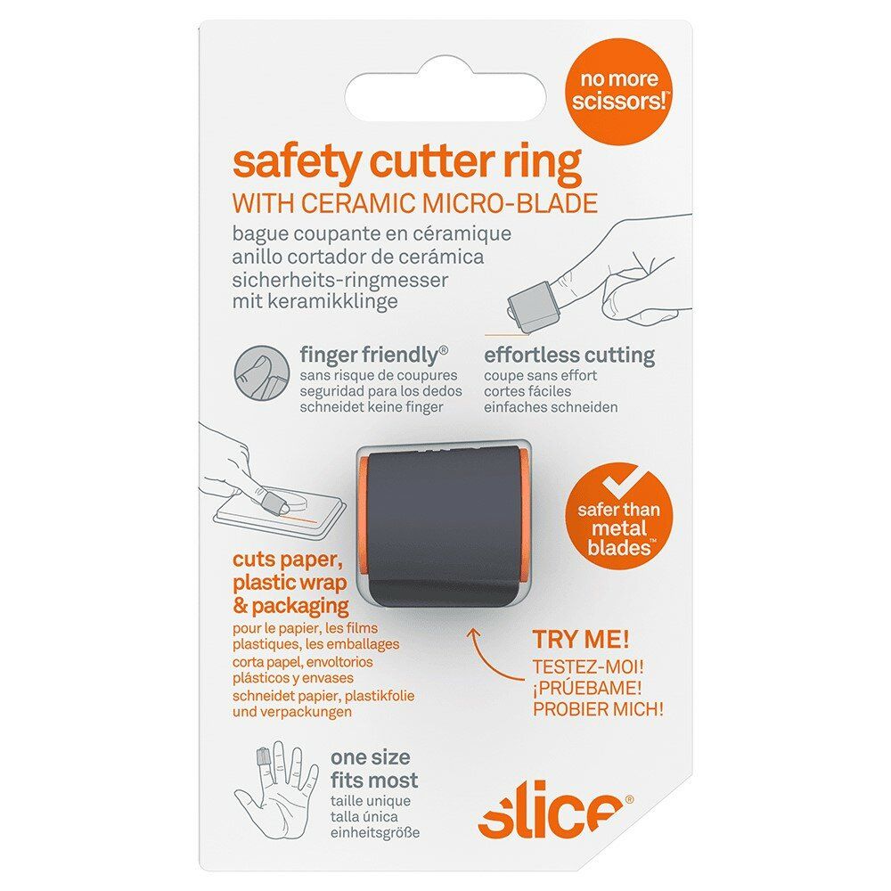 Bezpečnostní univerzální kroužek-nožík se snadno nasunuje na prst a slouží pro nepřetržité používání při otevírání různých obalových materiálů, například plastových sáčků, plastových obalů a balicí pásky. S odnímatelným silikonovým adaptérovým kroužkem se tento prstencový nůž hodí pro většinu velikostí rukou. Mikro-keramická čepel je šetrná k prstům. Bezpečnostní ořezávací kroužek nabízí precizní, nepřetržitý řezný výkon, lepší kontrolu a pohodlí.