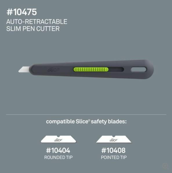 Automatické pružinové zatahování čepele nože na krabice Slice 10475 je pouze jedním z prvků, které dělají z tohoto nože univerzálního pomocníka ve tvaru pera. Odolná rukojeť tohoto nože ze skleněného nylonu má úzký design, který vám umožní práci ve stísněných prostorách. Díky praktickému otvoru na závěsnou šňůrku můžete mít svůj samozatahovací nůž vždy při ruce.