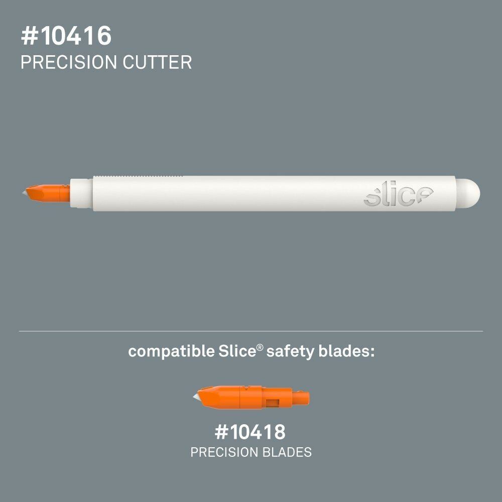 Přesný nůž Slice 10416 je aktualizovaná verze přesných nožů. A to díky novému designu rukojeti, který obsahuje no-roll pohodlný úchop pro lepší kontrolu. Odolná nylonová rukojeť se skleněnou výplní pojme naši vyměnitelnou patronu z mikro-keramiky SKU 10418, takže jakmile se první čepel otupí, můžete ji nahradit jednoduchým otočením a tahem - nepotřebujete žádné vnější nástroje. Ideální pro řezání papíru, vinylu a další tenkých materiálu.