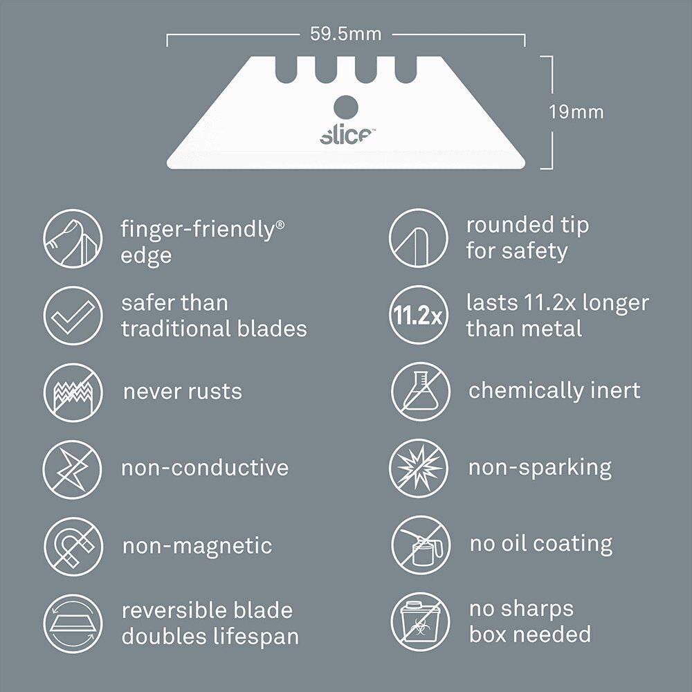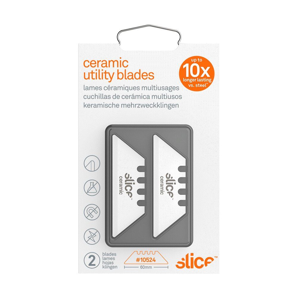 Náhradní čepele SKU 10524 jsou vyrobeny ze 100% oxidu zirkoničitého, což je moderní keramický materiál, který kombinuje řadu užitečných funkcí, které ho odlišují od typických ocelových čepelí. Oxid zirkoničitý je nejiskřivý, nevodivý, nemagnetický, chemicky inertní, nekoroduje a nepotřebuje mazat olejem. Zaoblená špička poskytuje zvýšenou ochranu před zraněním. Až budete potřebovat novou hranu, jednoduše oboustrannou čepel otočte.