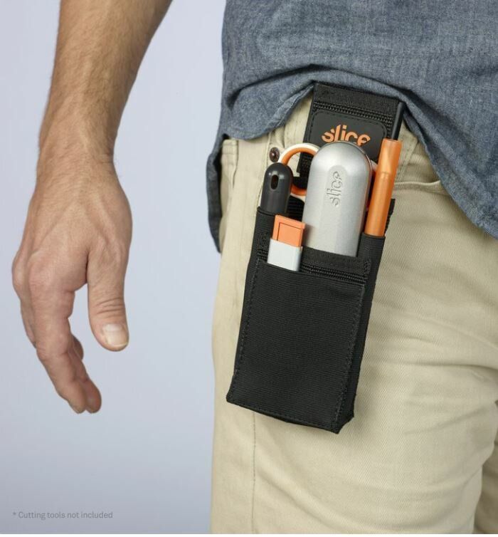Hlavní struktura je vyrobena z odolné a pružné polyesterové tkaniny, která bude sloužit roky i při každodenním používání. Přední a boční kapsy obsahují extrémně flexibilní materiál Spandex, díky němuž jsou schopny pevně držet různé nářadí bez ohledu na jeho velikost. Kapsy mají různé velikosti, takže najdete místo pro malé tužkové skalpely i pro ty největší univerzální nože. Spona na opasek se dá jednoduše odejmout, takže si pouzdro můžete zavěsit prakticky kamkoliv.